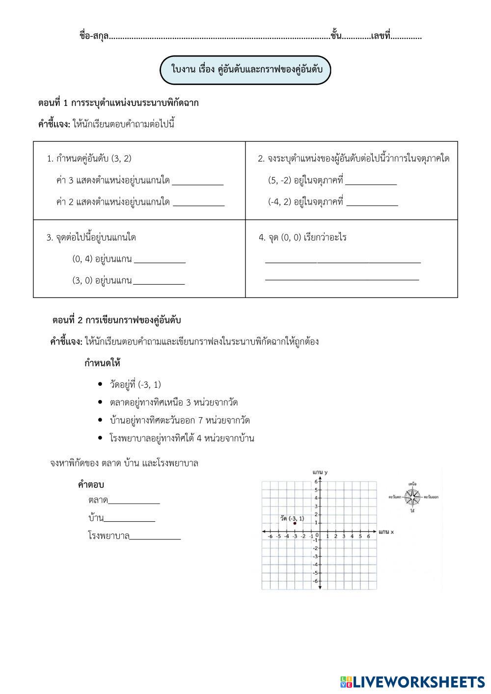 ตอนที่ 2 ให้นักเรียนตอบคำถามและเขียนกราฟลงในระนาบพิกัดฉากให้ถูกต้อง