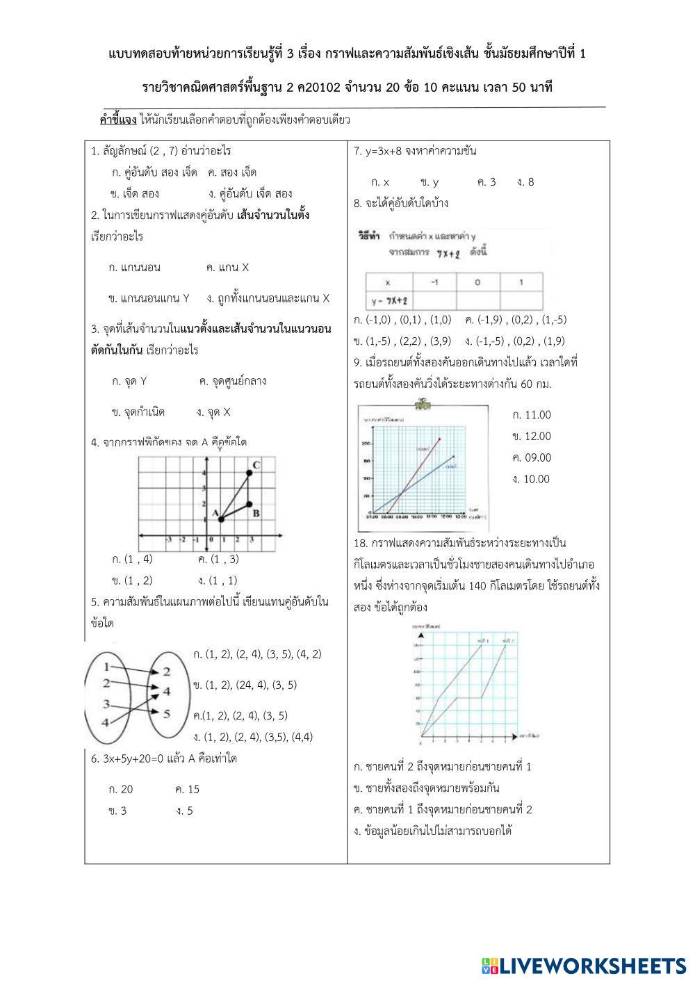ใบงาน เรื่อง คู่อันดับและกราฟของคู่อันดับ