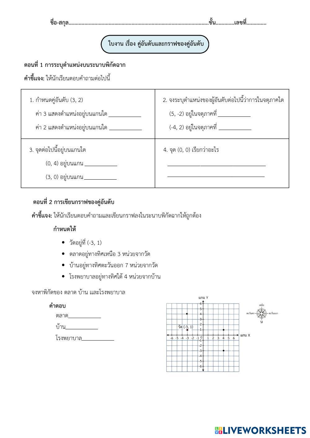Created by 14870 Math Middle School 7th grade Functions and Graphs Thai Author's Instructions ตอนที่ 1 ให้นักเรียนตอบคำถามต่อไปนี้ ตอนที่ 2 ให้นักเรียนตอบคำถามและเขียนกราฟลงในระนาบพิกัดฉากให้ถูกต้อง My Google Classroom Courses × 0 classes selected (0 students total) Quick Access Select all classes (0 classes) All Classes Loading courses... Cancel Share Share to selected Course __COURSE_NAME__ __STUDENT_NAME__ (__STUDENT_EMAIL__) ใบงาน เรื่อง คู่อันดับและกราฟของคู่อันดับ Download Worksheet Validation Check my answers Emails my answers to my teacher Full name Group/level School subject Teacher's email or key code Close Submit Validating worksheet... (12) Your answers have been sent to your teacher. Good luck! OK We encountered an error submitting your answers. Please try again. OK Advertisement | Go Ad Free Created by 14870 Math Middle School 7th grade Functions and Graphs Thai Author's Instructions ตอนที่ 1 ให้นักเรียนตอบคำถามต่อไปนี้ ตอนที่ 2 ให้นักเรียนตอบคำถามและเขียนกราฟลงในระนาบพิกัดฉากให้ถูกต้อง Explore Worksheets ใบงาน เรื่อง คู่อันดับและกราฟของคู่อันดับ Math 7th grade ใบงาน เรื่อง คู่อันดับและกราฟของคู่อันดับ Functions and Graphs - Math ตอนที่ 1 ให้นักเรียนตอบคำถามต่อไปนี้ ตอนที่ 2 ให้นักเรียนตอบคำถามและเขียนกราฟลงในระนาบพิกัดฉากให้ถูกต้อง ใบงาน เรื่อง คู่อันดับและกราฟของคู่อันดับ Math 7th grade ใบงาน เรื่อง คู่อันดับและกราฟของคู่อันดับ Functions and Graphs - Math ตอนที่ 1 ให้นักเรียนตอบคำถามต่อไปนี้ ตอนที่ 2 ให้นักเรียนตอบคำถามและเขียนกราฟลงในระนาบพิกัดฉากให้ถูกต้อง נקודות במערכת צירים Math 7th grade נקודות במערכת צירים Functions and Graphs - Math מציאת שיעורי נקודות במערכת צירים נקודות במערכת צירים Math 7th grade נקודות במערכת צירים Functions and Graphs - Math מציאת שיעורי נקודות במערכת צירים