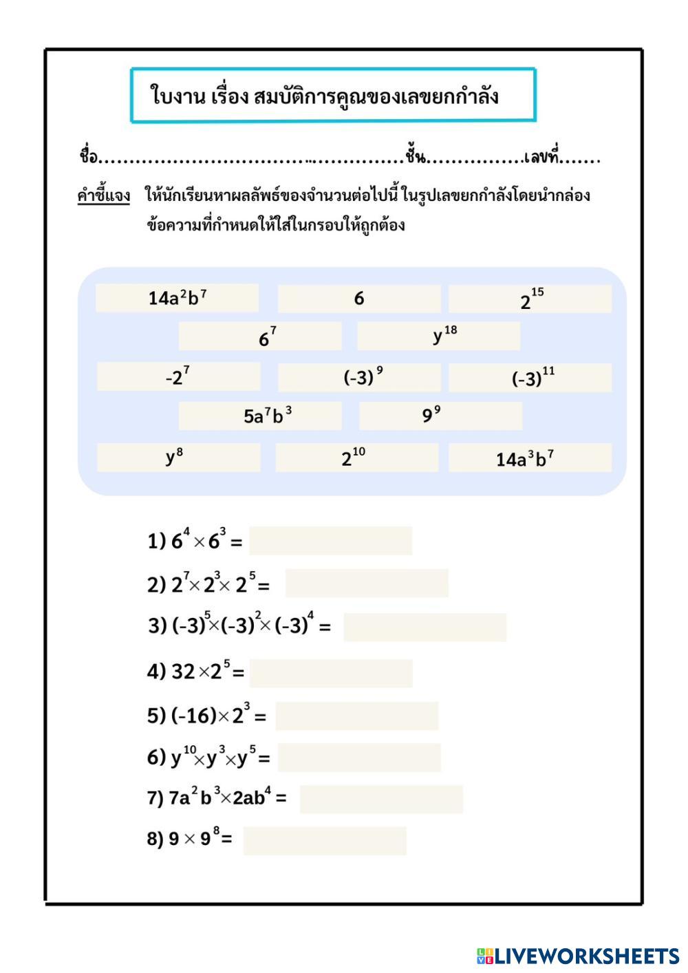 จงหาผลลัพธ์ของจำนวนต่อไปนี้ในรูปเลขยกกำลัง