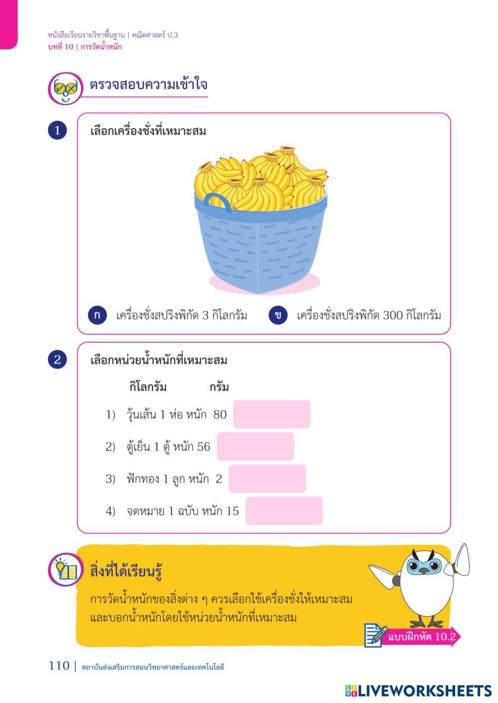 Created by 8826 Math Elementary 3rd grade Measurement Thai Author's Instructions ใบงานที่ 1 การชั่งน้ำหนัก My Google Classroom Courses × 0 classes selected (0 students total) Quick Access Select all classes (0 classes) All Classes Loading courses... Cancel Share Share to selected Course __COURSE_NAME__ __STUDENT_NAME__ (__STUDENT_EMAIL__) ใบงานที่ 1 การชั่งน้ำหนัก Download Worksheet Validation Check my answers Emails my answers to my teacher Full name Group/level School subject Teacher's email or key code Close Submit Validating worksheet... (12) Your answers have been sent to your teacher. Good luck! OK We encountered an error submitting your answers. Please try again. OK Advertisement | Go Ad Free Created by 8826 Math Elementary 3rd grade Measurement Thai Author's Instructions ใบงานที่ 1 การชั่งน้ำหนัก Explore Worksheets ใบงานที่ 3 การวัดปริมาตร Math 3rd grade ใบงานที่ 3 การวัดปริมาตร Measurement - Math ใบงานที่ 3 การวัดปริมาตร ใบงานที่ 2 การวัดปริมาตร Math 3rd grade ใบงานที่ 2 การวัดปริมาตร Measurement - Math ใบงานที่ 2 การวัดปริมาตร ใบงานที่ 1 การวัดปริมาตร Math 3rd grade ใบงานที่ 1 การวัดปริมาตร Measurement - Math ใบงานที่ 1 การวัดปริมาตร ใบงานที่ 3 การชั่งน้ำหนัก Math 3rd grade ใบงานที่ 3 การชั่งน้ำหนัก Measurement - Math ใบงานที่ 3 การชั่งน้ำหนัก