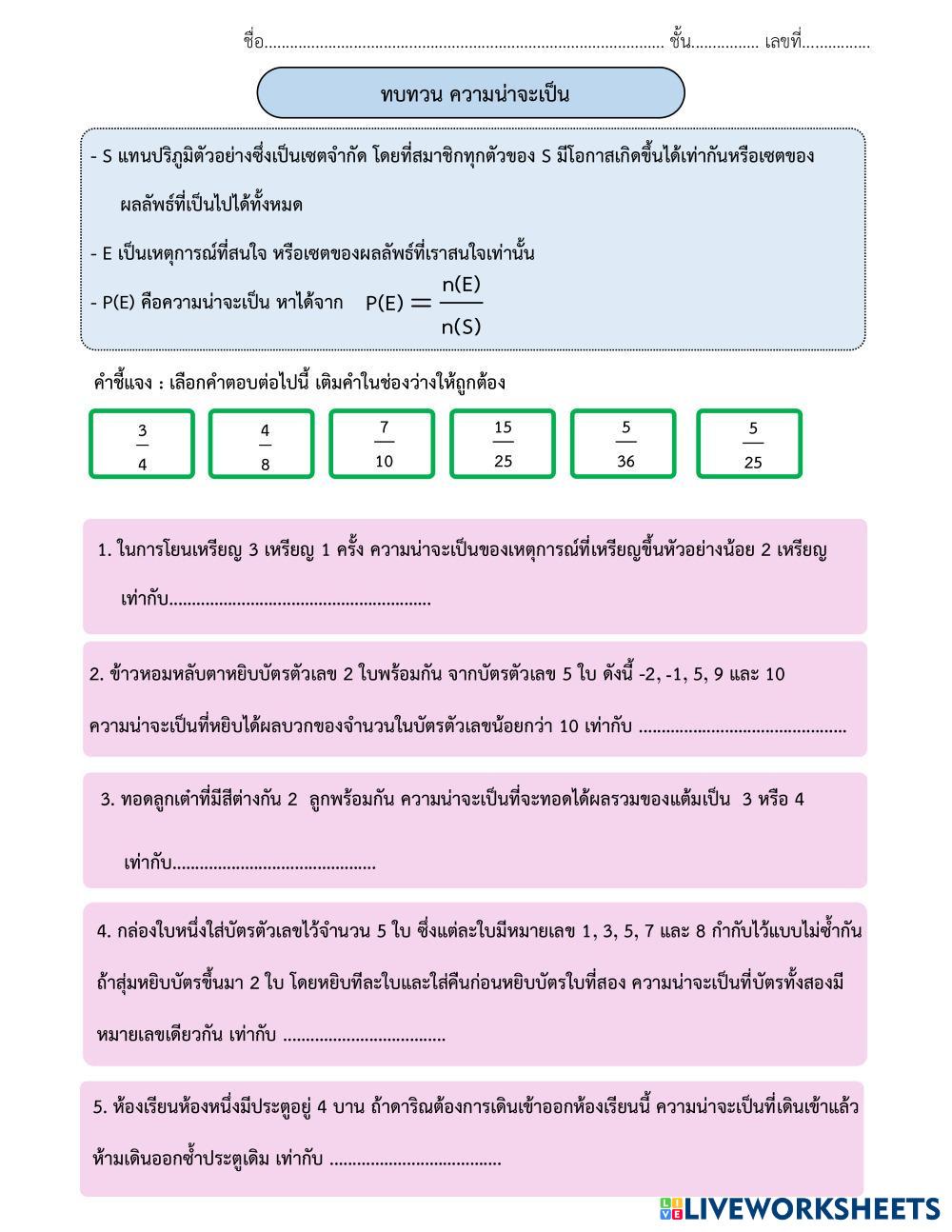ทบทวนหลักการนับเบื้องต้นและความน่าจะเป็น