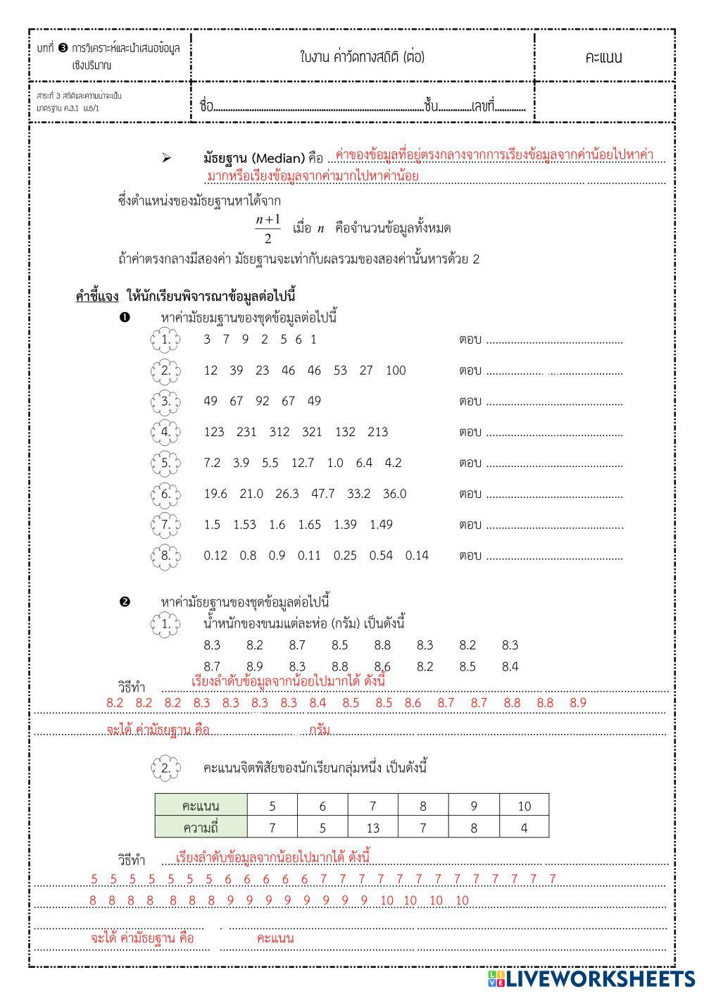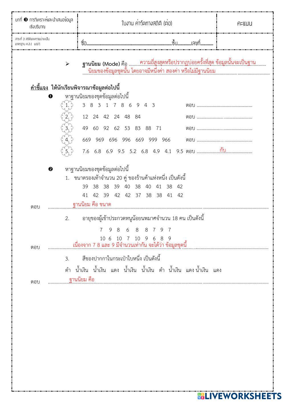 Created by bbeesirilak Mathematic statistic (928119 Age 15+ level: Grade 12 Thai Author's Instructions My Google Classroom Courses × 0 classes selected (0 students total) Quick Access Select all classes (0 classes) All Classes Loading courses... Cancel Share Share to selected Course __COURSE_NAME__ __STUDENT_NAME__ (__STUDENT_EMAIL__) แบบฝึกหัด มัธยฐานและฐานนิยม Download Worksheet Validation Check my answers Emails my answers to my teacher Full name Group/level School subject Teacher's email or key code Close Submit Validating worksheet... (12) Your answers have been sent to your teacher. Good luck! OK We encountered an error submitting your answers. Please try again. OK Advertisement | Go Ad Free Created by bbeesirilak Mathematic statistic (928119 Age 15+ level: Grade 12 Thai Author's Instructions