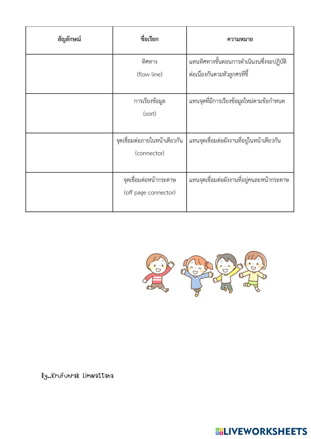 Created byFunrak Limwattana ผังงาน Computer Age 16+ level: M.4 Thai Author's Instructions My Google Classroom Courses × 0 classes selected (0 students total) Quick Access Select all classes (0 classes) All Classes Loading courses... Cancel Share Share to selected Course __COURSE_NAME__ __STUDENT_NAME__ (__STUDENT_EMAIL__) ผังงาน Download Worksheet Validation Check my answers Emails my answers to my teacher Full name Group/level School subject Teacher's email or key code Close Submit Validating worksheet... (12) Your answers have been sent to your teacher. Good luck! OK We encountered an error submitting your answers. Please try again. OK Advertisement | Go Ad Free Created byFunrak Limwattana ผังงาน Computer Age 16+ level: M.4 Thai Author's Instructions