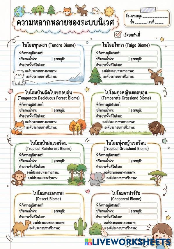 Created by 14671 Science High School 10th grade Biology Thai Author's Instructions ตอบคำถามในช่องว่างเกี่ยวลักษณะเด่นของไบโอมแต่ละชนิดให้ถูกต้อง My Google Classroom Courses × 0 classes selected (0 students total) Quick Access Select all classes (0 classes) All Classes Loading courses... Cancel Share Share to selected Course __COURSE_NAME__ __STUDENT_NAME__ (__STUDENT_EMAIL__) ระบบนิเวศ Download Worksheet Validation Check my answers Emails my answers to my teacher Full name Group/level School subject Teacher's email or key code Close Submit Validating worksheet... (12) Your answers have been sent to your teacher. Good luck! OK We encountered an error submitting your answers. Please try again. OK Advertisement | Go Ad Free Created by 14671 Science High School 10th grade Biology Thai Author's Instructions ตอบคำถามในช่องว่างเกี่ยวลักษณะเด่นของไบโอมแต่ละชนิดให้ถูกต้อง Explore Worksheets Bài 21 - trao đổi chất ở VSV Science 10th grade Bài 21 - trao đổi chất ở VSV Biology - Science hoan thanh bt LKPD Keanekaragaman Hayati di Pantai Bunton_2 Science 10th grade LKPD Keanekaragaman Hayati di Pantai Bunton_2 Biology - Science - LKPD Keanekaragaman Hayati di Pantai Bunton Science 10th grade LKPD Keanekaragaman Hayati di Pantai Bunton Biology - Science - Prakarya Pengolahan Science 10th grade Prakarya Pengolahan Biology - Science Mengenal Produk Olahan Nonpangan Dari Bahan Hewani