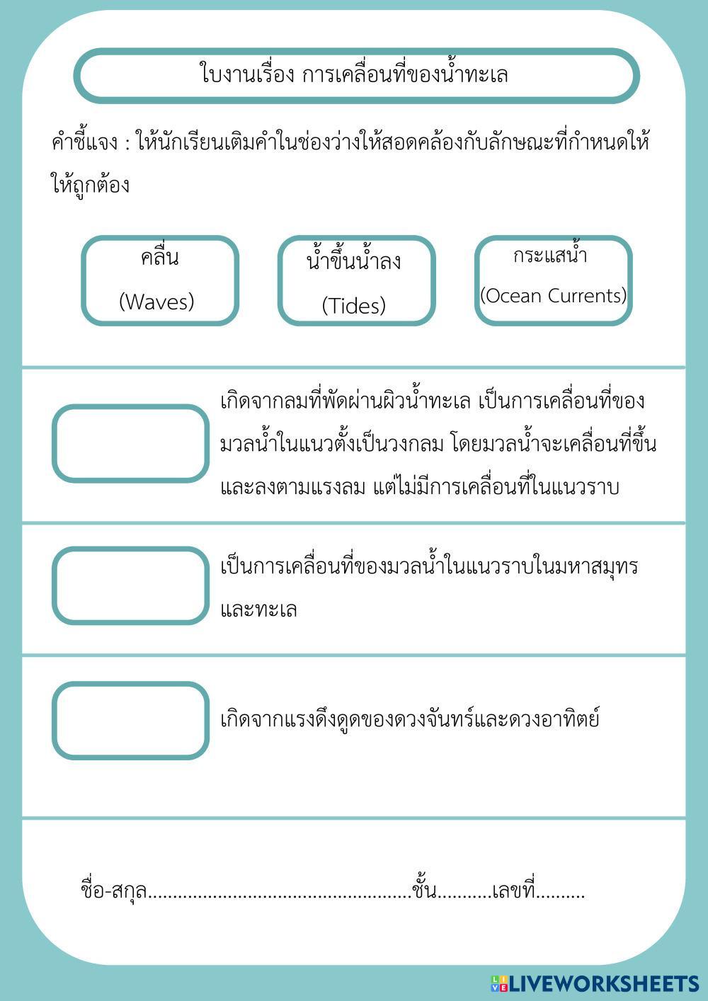 Created byPiyathida Science High School 12th grade Earth Science Thai Author's Instructions การเคลื่อนที่ของน้ำทะเล My Google Classroom Courses × 0 classes selected (0 students total) Quick Access Select all classes (0 classes) All Classes Loading courses... Cancel Share Share to selected Course __COURSE_NAME__ __STUDENT_NAME__ (__STUDENT_EMAIL__) การเคลื่อนที่ของน้ำทะเล Download Worksheet Validation Check my answers Emails my answers to my teacher Full name Group/level School subject Teacher's email or key code Close Submit Validating worksheet... (12) Your answers have been sent to your teacher. Good luck! OK We encountered an error submitting your answers. Please try again. OK Advertisement | Go Ad Free Created byPiyathida Science High School 12th grade Earth Science Thai Author's Instructions การเคลื่อนที่ของน้ำทะเล Explore Worksheets วงจรไฟฟ้า Science 12th grade วงจรไฟฟ้า Earth Science - Science - ใบงาน 1.1 ไอเดียสุดล้ำกับ Generative AI Science 12th grade ใบงาน 1.1 ไอเดียสุดล้ำกับ Generative AI Earth Science - Science - Saguaisla1 Science 12th grade Saguaisla1 Earth Science - Science Coloca los nombres correspondientes en su recuadro اطلائعيات Science 12th grade اطلائعيات Earth Science - Science تصميم ورقة عمل