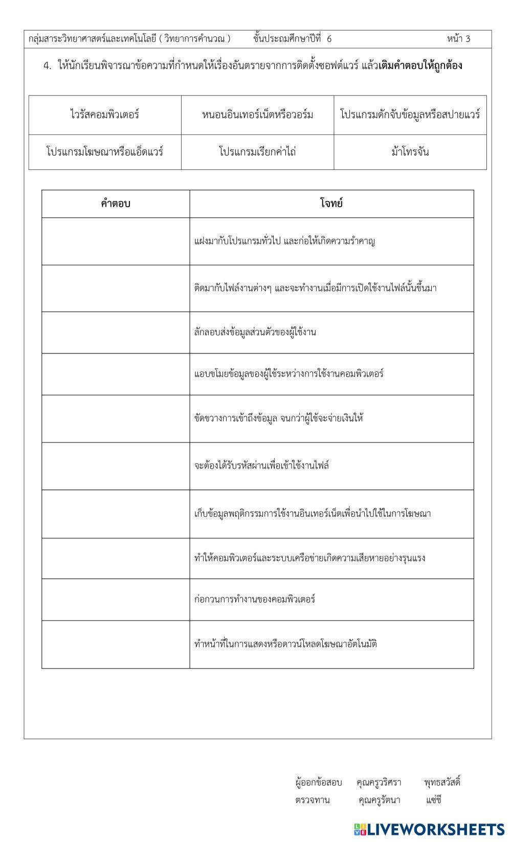 Created by taveerat65 Science Elementary 5th grade Earth Science Thai Author's Instructions ป.6 My Google Classroom Courses × 0 classes selected (0 students total) Quick Access Select all classes (0 classes) All Classes Loading courses... Cancel Share Share to selected Course __COURSE_NAME__ __STUDENT_NAME__ (__STUDENT_EMAIL__) วิชาวิทยาการคำนวณ สอบวัดผลปลายภาคเรียนที่ 2 ปี68 Download Worksheet Validation Check my answers Emails my answers to my teacher Full name Group/level School subject Teacher's email or key code Close Submit Validating worksheet... (12) Your answers have been sent to your teacher. Good luck! OK We encountered an error submitting your answers. Please try again. OK Advertisement | Go Ad Free Created by taveerat65 Science Elementary 5th grade Earth Science Thai Author's Instructions ป.6 Explore Worksheets Year 5 Science Practice Sheets Science 5th grade Year 5 Science Practice Sheets Earth Science - Science Complete the following ฟัวว่ร Science 5th grade ฟัวว่ร Earth Science - Science หกหก Éssers vius o inerts Science 5th grade Éssers vius o inerts Earth Science - Science Classifica Planet Earth Science 5th grade Planet Earth Earth Science - Science Complete and email to your teacher.