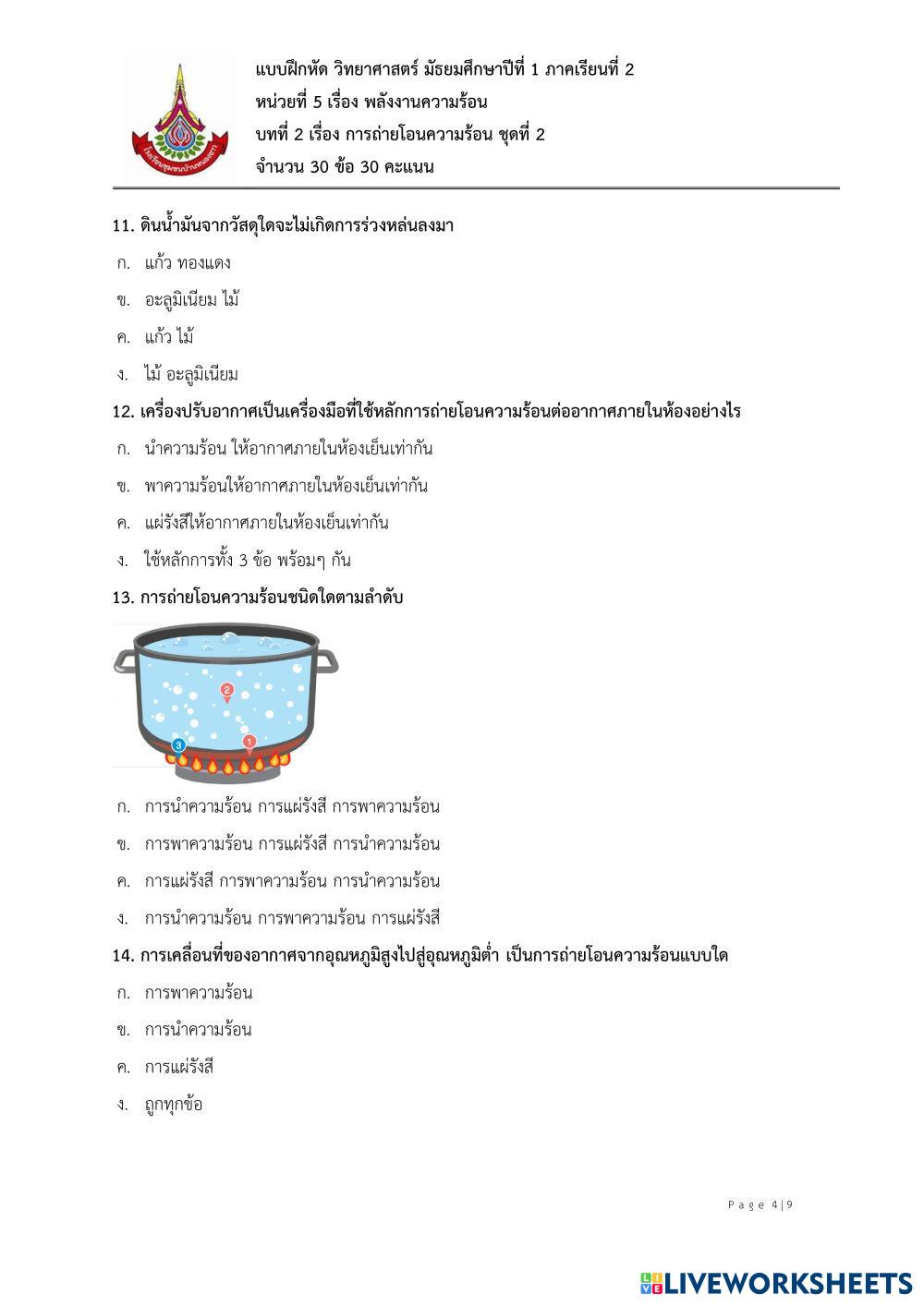 Created by sarisyos Science Middle School 7th grade Physical Science Thai Author's Instructions 111 My Google Classroom Courses × 0 classes selected (0 students total) Quick Access Select all classes (0 classes) All Classes Loading courses... Cancel Share Share to selected Course __COURSE_NAME__ __STUDENT_NAME__ (__STUDENT_EMAIL__) sci.m1-การถ่ายโอนความร้อน2 Download Worksheet Validation Check my answers Emails my answers to my teacher Full name Group/level School subject Teacher's email or key code Close Submit Validating worksheet... (12) Your answers have been sent to your teacher. Good luck! OK We encountered an error submitting your answers. Please try again. OK Advertisement | Go Ad Free Created by sarisyos Science Middle School 7th grade Physical Science Thai Author's Instructions 111 Explore Worksheets LKPD 2_Kegiatan 2_Modul FPJBL AI Science 7th grade LKPD 2_Kegiatan 2_Modul FPJBL AI Physical Science - Science Silahkan Kerjakan tugas dibawah ini LKPD_Home_1 Science 7th grade LKPD_Home_1 Physical Science - Science Silahkan Baca dan Kerjakan Materi di Bawah LKPD 1_Kegiatan 1_Aktifitas di Kelas_Modul FPJBL AI Science 7th grade LKPD 1_Kegiatan 1_Aktifitas di Kelas_Modul FPJBL AI Physical Science - Science silahkan Kerjakan Kegiatan Berikut LKPD KKA Kelas 7: Etika dan Risiko KA Science 7th grade LKPD KKA Kelas 7: Etika dan Risiko KA Physical Science - Science Kerjakan LKPD KKA ini sesuai dengan petunjuk yang tertera di dalamnya. Tanyakan kepada guru apabila ada hal yang belum dipahami.