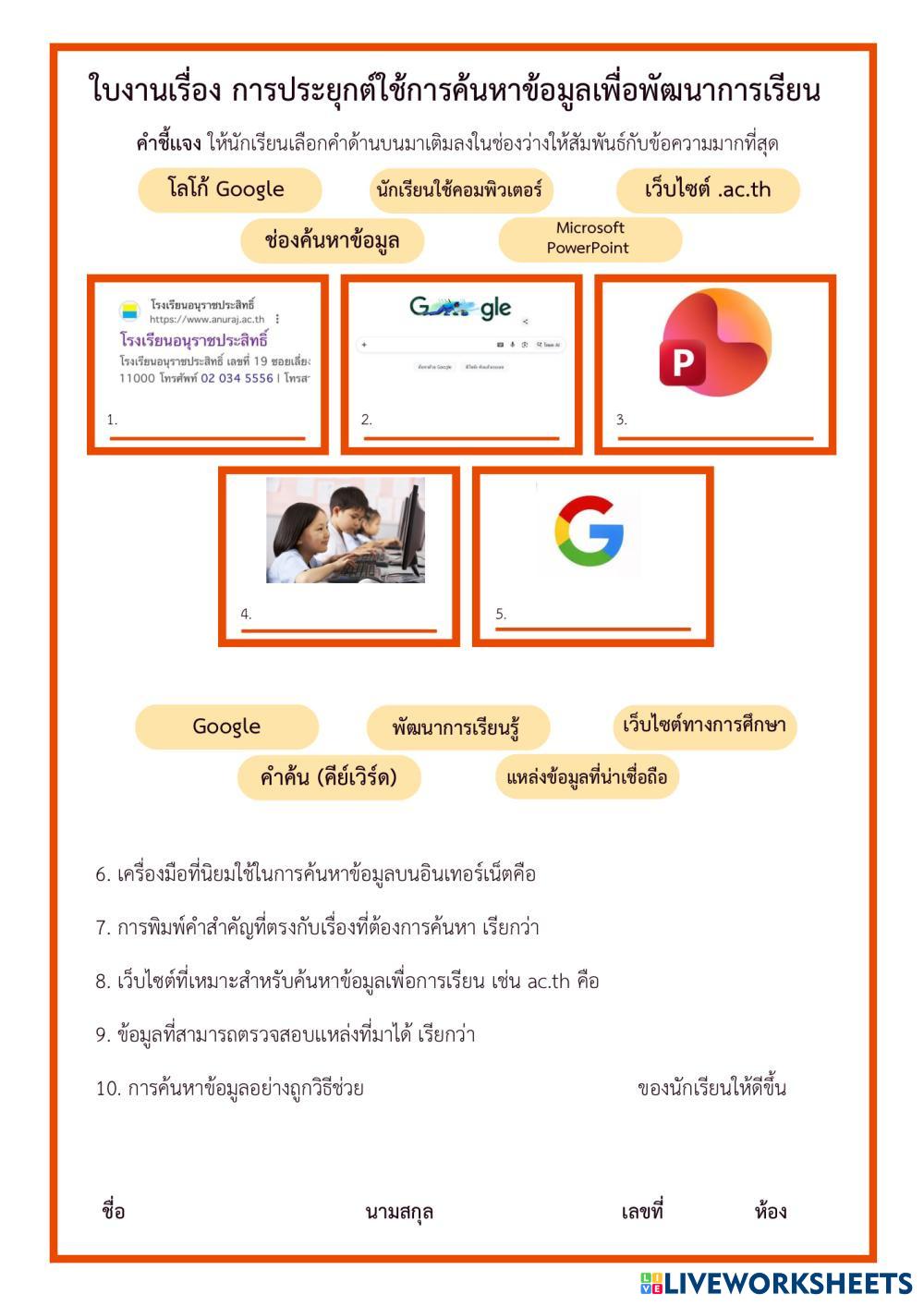 ใบงานที่ 3 เรื่อง การประยุกต์ใช้การค้นหาข้อมูลเพื่อพัฒนาการเรียน