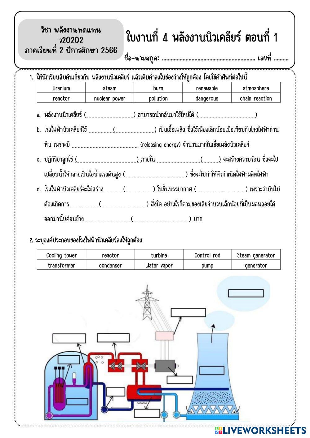 Created byNattaphon Seechad scince renewable energy Age 14+ level: 9 Thai Author's Instructions My Google Classroom Courses × 0 classes selected (0 students total) Quick Access Select all classes (0 classes) All Classes Loading courses... Cancel Share Share to selected Course __COURSE_NAME__ __STUDENT_NAME__ (__STUDENT_EMAIL__) พลังงานนิวเคลียร์ ตอนที่ 1 Download Worksheet Validation Check my answers Emails my answers to my teacher Full name Group/level School subject Teacher's email or key code Close Submit Validating worksheet... (12) Your answers have been sent to your teacher. Good luck! OK We encountered an error submitting your answers. Please try again. OK Advertisement | Go Ad Free Created byNattaphon Seechad scince renewable energy Age 14+ level: 9 Thai Author's Instructions