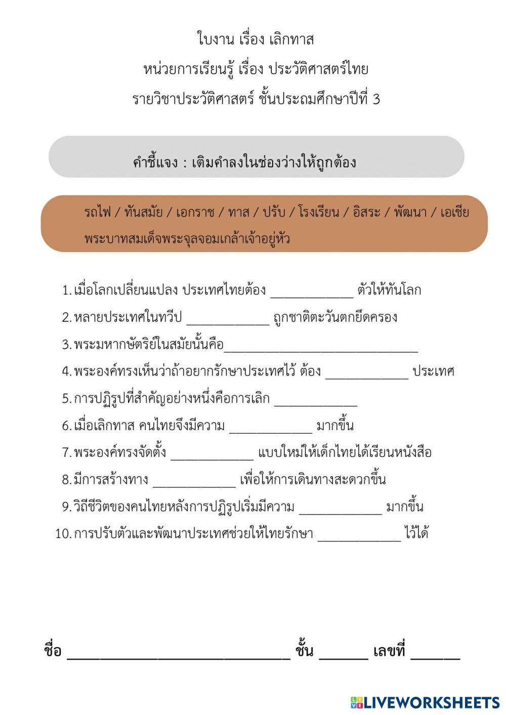 Created by 06101 Social Studies Elementary 3rd grade History Thai Author's Instructions ป.3 My Google Classroom Courses × 0 classes selected (0 students total) Quick Access Select all classes (0 classes) All Classes Loading courses... Cancel Share Share to selected Course __COURSE_NAME__ __STUDENT_NAME__ (__STUDENT_EMAIL__) เติมคำ Download Worksheet Validation Check my answers Emails my answers to my teacher Full name Group/level School subject Teacher's email or key code Close Submit Validating worksheet... (12) Your answers have been sent to your teacher. Good luck! OK We encountered an error submitting your answers. Please try again. OK Advertisement | Go Ad Free Created by 06101 Social Studies Elementary 3rd grade History Thai Author's Instructions ป.3 Explore Worksheets เศรษฐกิจพอเพียง Social Studies 3rd grade เศรษฐกิจพอเพียง History - Social Studies ให้นักเรียนจับคู่ข้อความต่อไปนี้ให้สัมพันธ์กัน เติมคำตอบให้ถูกต้อง Social Studies 3rd grade เติมคำตอบให้ถูกต้อง History - Social Studies ป.3 ตามหาคู่ที่ถูกต้อง Social Studies 3rd grade ตามหาคู่ที่ถูกต้อง History - Social Studies เลือกคำตอบที่ถูกต้อง ประเพณี Social Studies 3rd grade ประเพณี History - Social Studies เติมคำในช่อง