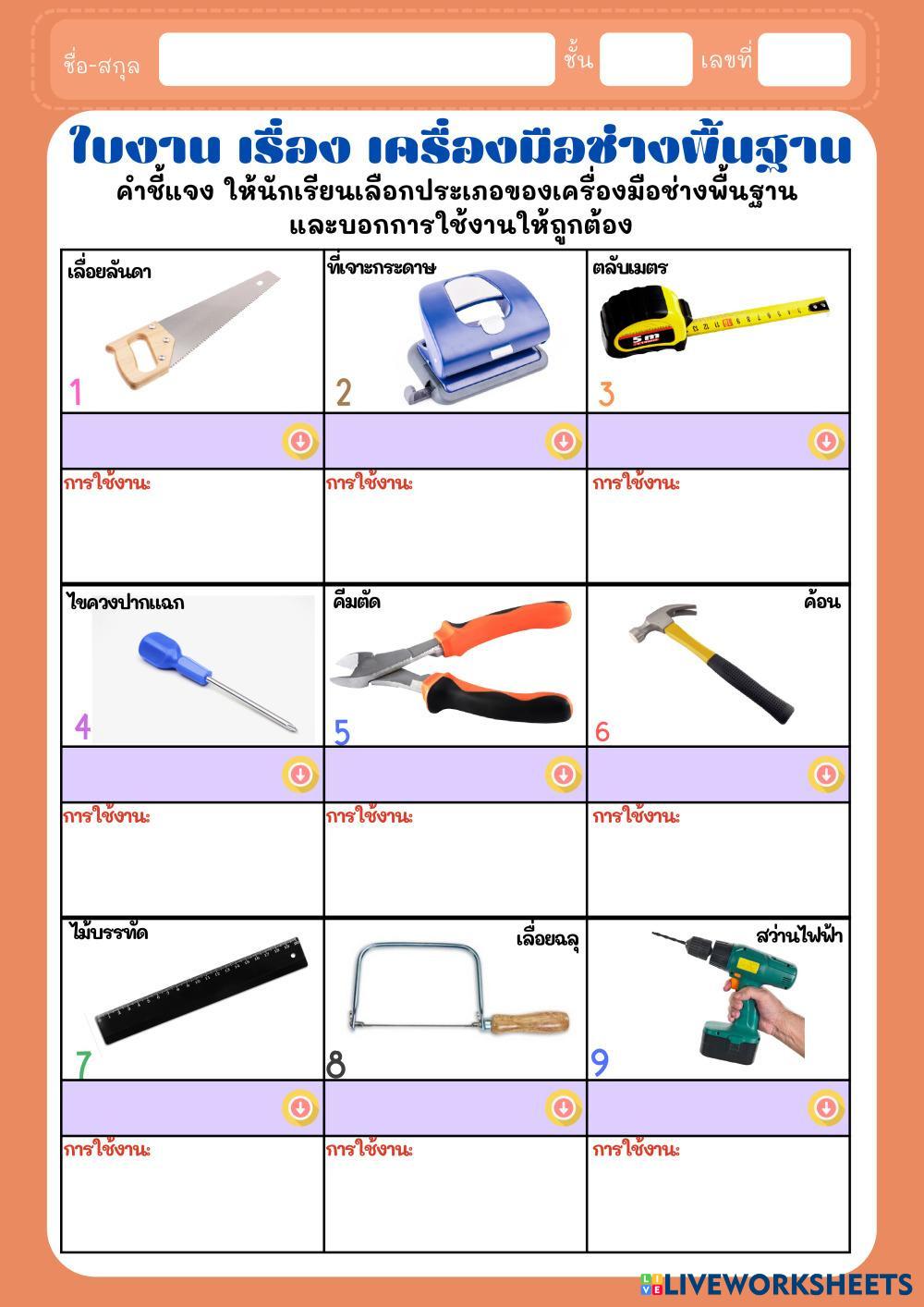 Created byJeerarat Technology การออกแบบและเทคโนโลยี Age 13-17 level: m.1 Thai Author's Instructions My Google Classroom Courses × 0 classes selected (0 students total) Quick Access Select all classes (0 classes) All Classes Loading courses... Cancel Share Share to selected Course __COURSE_NAME__ __STUDENT_NAME__ (__STUDENT_EMAIL__) ใบงานเรื่อง วัสดุและเครื่องมือช่างพื้นฐาน2 Download Worksheet Validation Check my answers Emails my answers to my teacher Full name Group/level School subject Teacher's email or key code Close Submit Validating worksheet... (12) Your answers have been sent to your teacher. Good luck! OK We encountered an error submitting your answers. Please try again. OK Advertisement | Go Ad Free Created byJeerarat Technology การออกแบบและเทคโนโลยี Age 13-17 level: m.1 Thai Author's Instructions