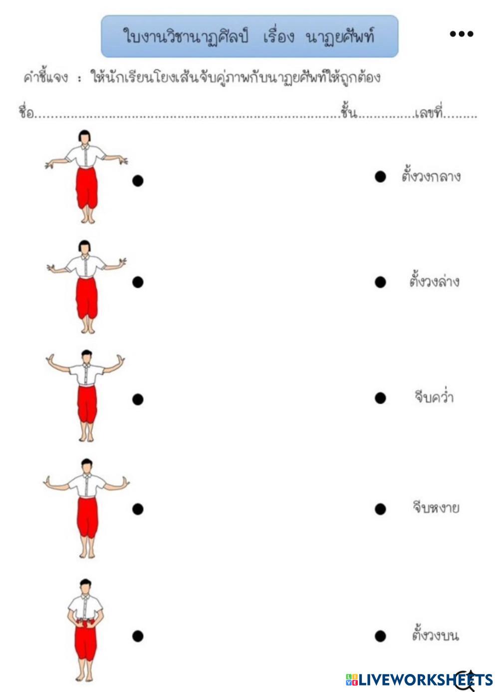 Created byJantankan Thai dance Thai dance Age 7-14 level: 7 Thai Author's Instructions My Google Classroom Courses × 0 classes selected (0 students total) Quick Access Select all classes (0 classes) All Classes Loading courses... Cancel Share Share to selected Course __COURSE_NAME__ __STUDENT_NAME__ (__STUDENT_EMAIL__) งานนาฏศิลป์ Download Worksheet Validation Check my answers Emails my answers to my teacher Full name Group/level School subject Teacher's email or key code Close Submit Validating worksheet... (12) Your answers have been sent to your teacher. Good luck! OK We encountered an error submitting your answers. Please try again. OK Advertisement | Go Ad Free Created byJantankan Thai dance Thai dance Age 7-14 level: 7 Thai Author's Instructions