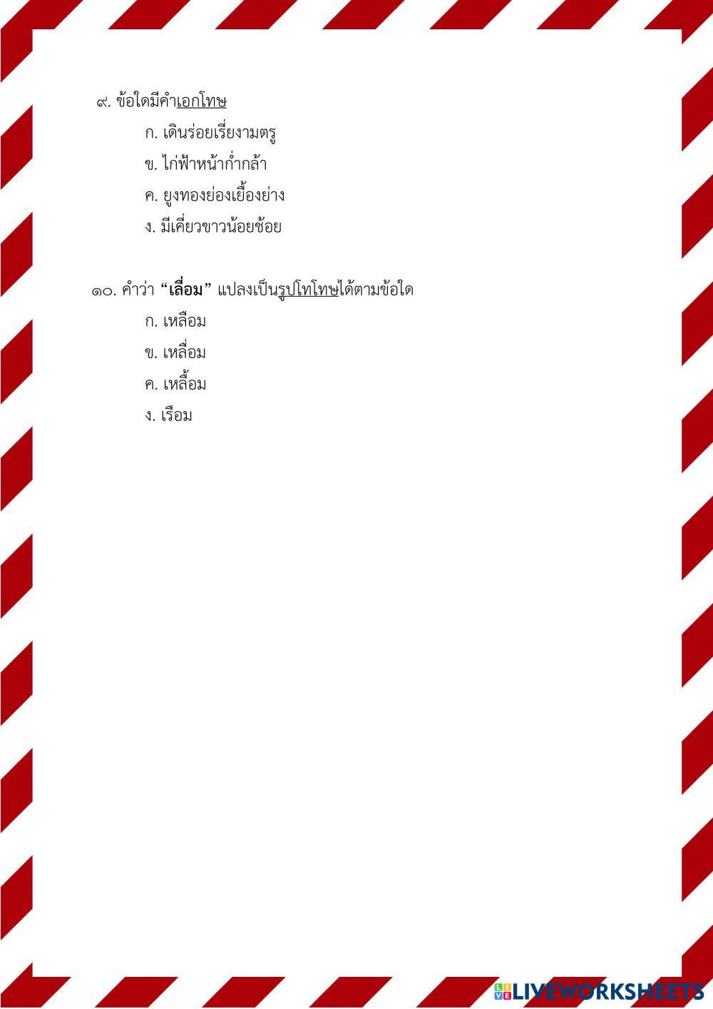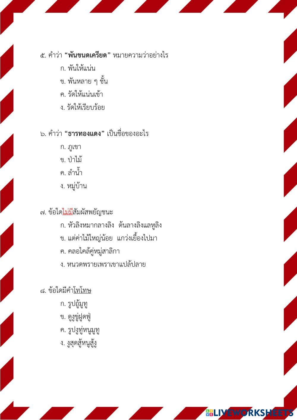 Created byRatcha Thai วรรณคดี Age 14-18 level: ม.2 Thai Author's Instructions My Google Classroom Courses × 0 classes selected (0 students total) Quick Access Select all classes (0 classes) All Classes Loading courses... Cancel Share Share to selected Course __COURSE_NAME__ __STUDENT_NAME__ (__STUDENT_EMAIL__) กาพย์ห่อโคลงประพาสธารทองแดง Download Worksheet Validation Check my answers Emails my answers to my teacher Full name Group/level School subject Teacher's email or key code Close Submit Validating worksheet... (12) Your answers have been sent to your teacher. Good luck! OK We encountered an error submitting your answers. Please try again. OK Advertisement | Go Ad Free Created byRatcha Thai วรรณคดี Age 14-18 level: ม.2 Thai Author's Instructions