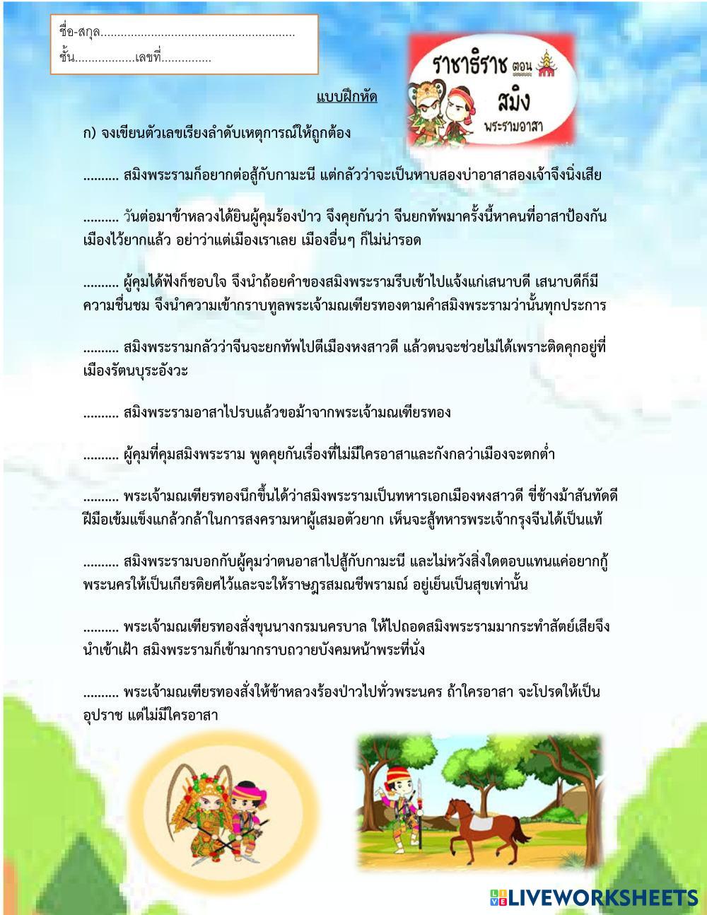 Created by 3410400693691 Thai วรรณคดี Age 13-18 level: ปานกลาง Thai Author's Instructions My Google Classroom Courses × 0 classes selected (0 students total) Quick Access Select all classes (0 classes) All Classes Loading courses... Cancel Share Share to selected Course __COURSE_NAME__ __STUDENT_NAME__ (__STUDENT_EMAIL__) ราชาธิราช๑ Download Worksheet Validation Check my answers Emails my answers to my teacher Full name Group/level School subject Teacher's email or key code Close Submit Validating worksheet... (12) Your answers have been sent to your teacher. Good luck! OK We encountered an error submitting your answers. Please try again. OK Advertisement | Go Ad Free Created by 3410400693691 Thai วรรณคดี Age 13-18 level: ปานกลาง Thai Author's Instructions