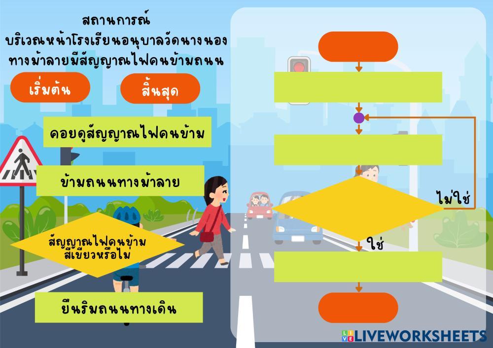 Created by KruFonfon วิทยาการคำนวณ Loop Flowchart Age 8-15 level: ป.3-4 Thai Author's Instructions My Google Classroom Courses × 0 classes selected (0 students total) Quick Access Select all classes (0 classes) All Classes Loading courses... Cancel Share Share to selected Course __COURSE_NAME__ __STUDENT_NAME__ (__STUDENT_EMAIL__) อัลกอริทึมผังงาน (Flowchart) โครงสร้างแบบวนซ้ำ เรื่อง ข้ามถนนหน้าโรงเรียน Download Worksheet Validation Check my answers Emails my answers to my teacher Full name Group/level School subject Teacher's email or key code Close Submit Validating worksheet... (12) Your answers have been sent to your teacher. Good luck! OK We encountered an error submitting your answers. Please try again. OK Advertisement | Go Ad Free Created by KruFonfon วิทยาการคำนวณ Loop Flowchart Age 8-15 level: ป.3-4 Thai Author's Instructions