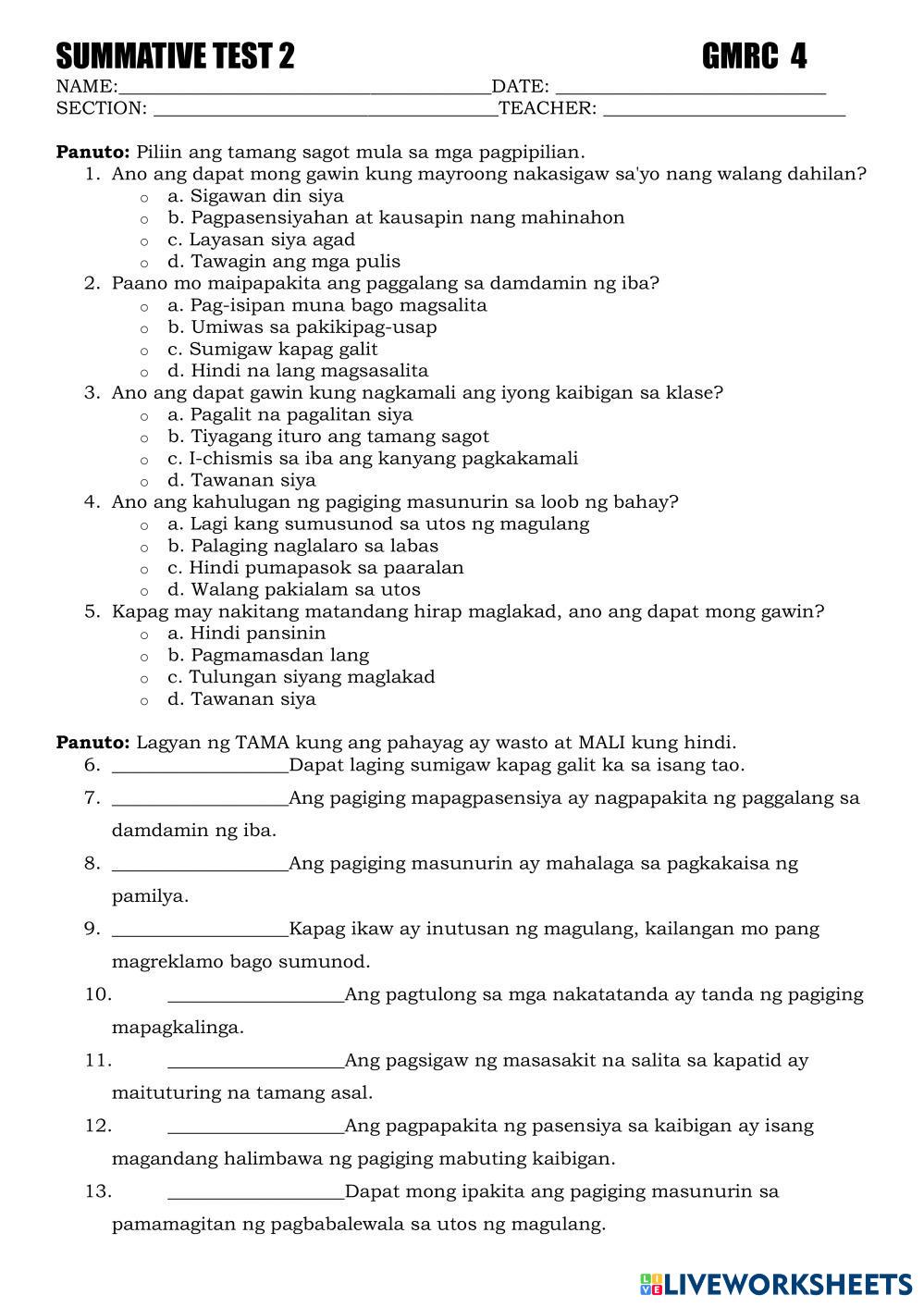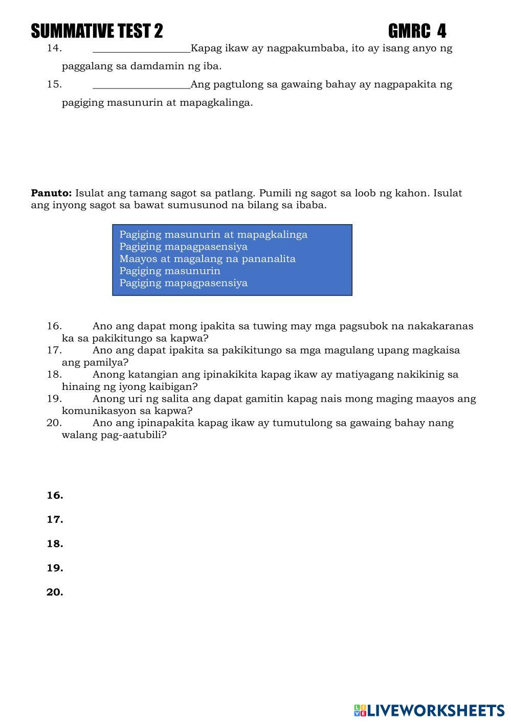 SAGUTAN ANG MGA SUMUSUNOD NA TANONG.
