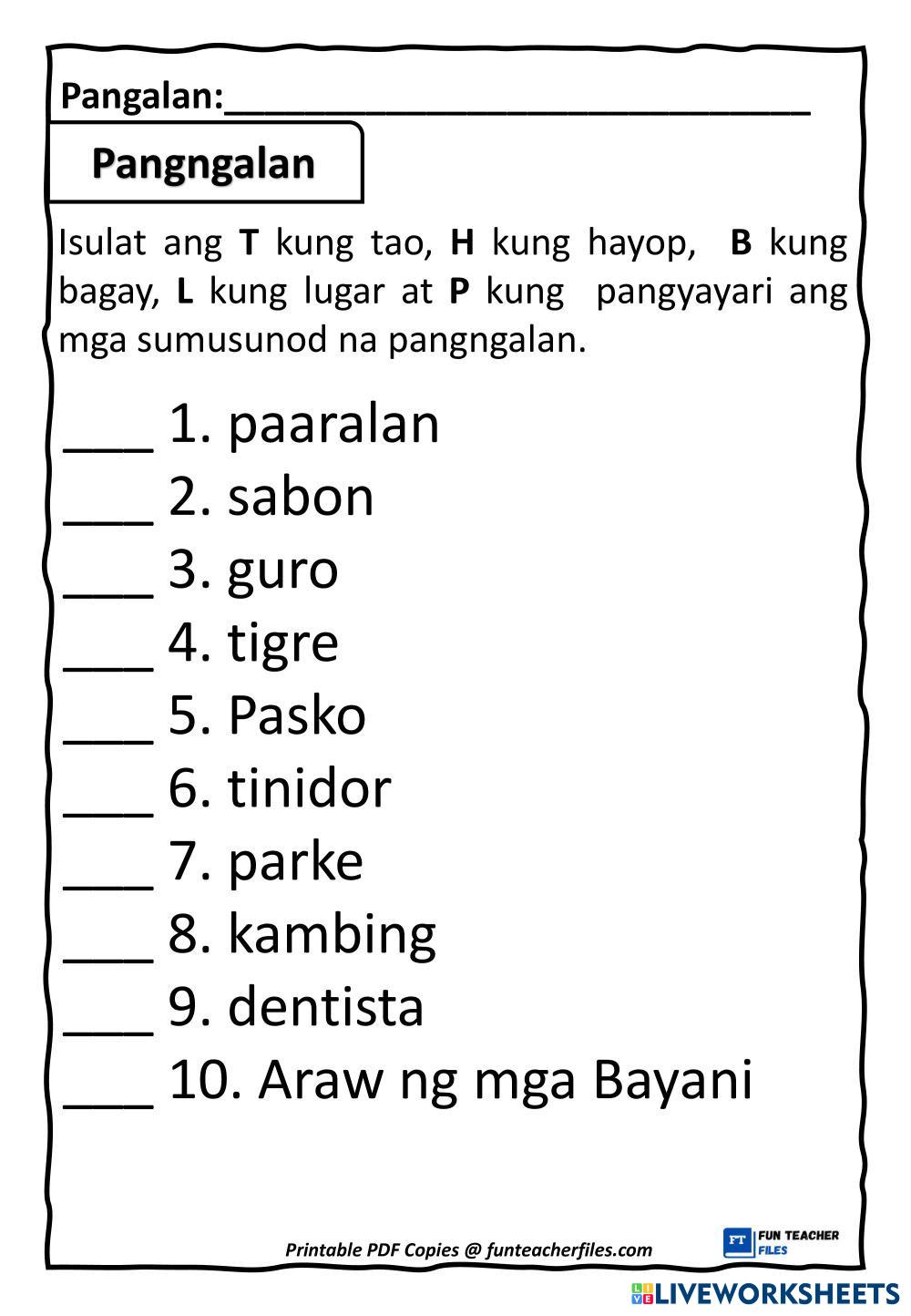 Created by ejoanna Filipino Pangalan Age 7-10 level: Grade 2 Tagalog Author's Instructions My Google Classroom Courses × 0 classes selected (0 students total) Quick Access Select all classes (0 classes) All Classes Loading courses... Cancel Share Share to selected Course __COURSE_NAME__ __STUDENT_NAME__ (__STUDENT_EMAIL__) Pangalan Download Worksheet Validation Check my answers Emails my answers to my teacher Full name Group/level School subject Teacher's email or key code Close Submit Validating worksheet... (12) Your answers have been sent to your teacher. Good luck! OK We encountered an error submitting your answers. Please try again. OK Advertisement | Go Ad Free Created by ejoanna Filipino Pangalan Age 7-10 level: Grade 2 Tagalog Author's Instructions