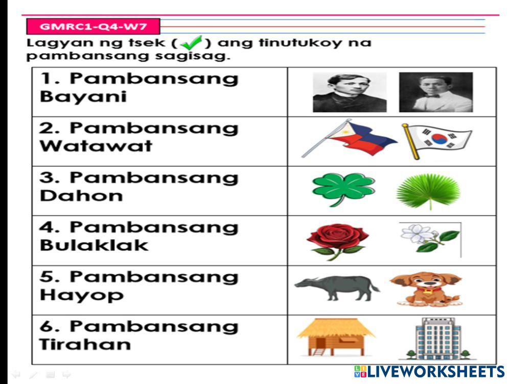 Lagyan ng tsek ang tinutukoy na pambansang sagisag