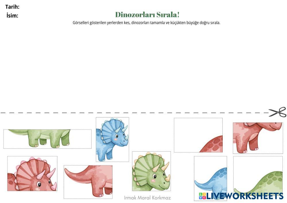 Dinozorları tamamla ve küçükten büyüğe sırala
