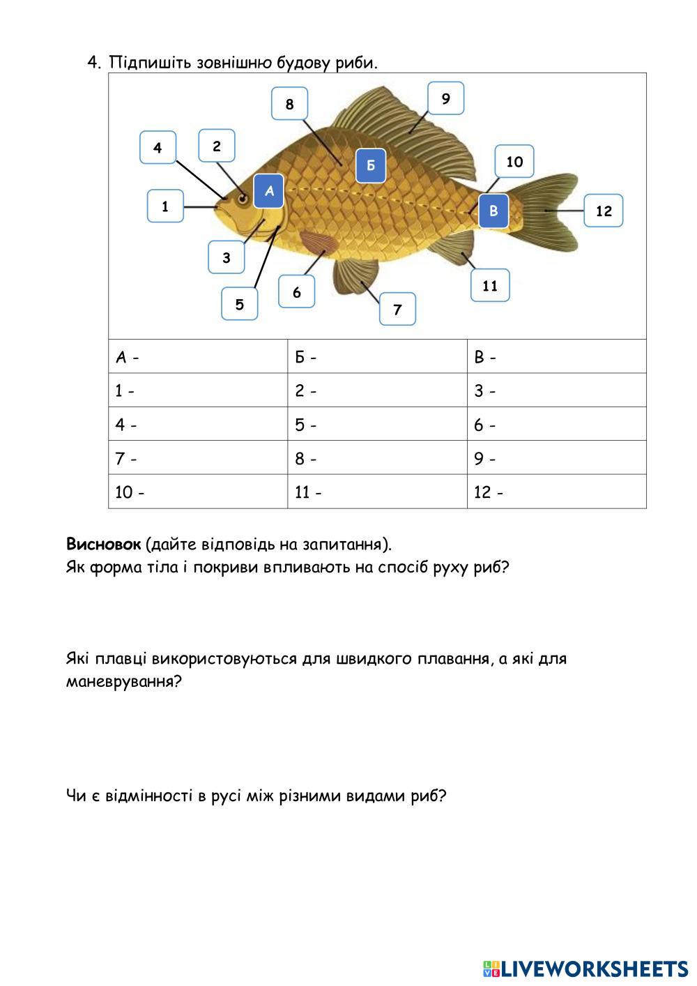Created byZGHURSKA TETJANA БІОЛОГІЯ ЛАБОРАТОРНЕ ДОСЛІДЖЕННЯ Age 12-16 level: 7 class/ standart Ukrainian Author's Instructions My Google Classroom Courses × 0 classes selected (0 students total) Quick Access Select all classes (0 classes) All Classes Loading courses... Cancel Share Share to selected Course __COURSE_NAME__ __STUDENT_NAME__ (__STUDENT_EMAIL__) ЗОВНІШНЯ БУДОВА ТА РУХ РИБ. Download Worksheet Validation Check my answers Emails my answers to my teacher Full name Group/level School subject Teacher's email or key code Close Submit Validating worksheet... (12) Your answers have been sent to your teacher. Good luck! OK We encountered an error submitting your answers. Please try again. OK Advertisement | Go Ad Free Created byZGHURSKA TETJANA БІОЛОГІЯ ЛАБОРАТОРНЕ ДОСЛІДЖЕННЯ Age 12-16 level: 7 class/ standart Ukrainian Author's Instructions