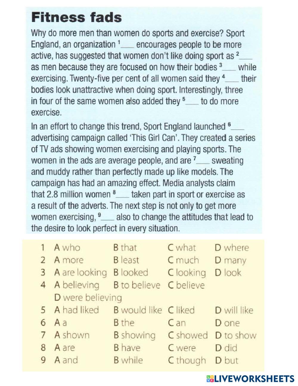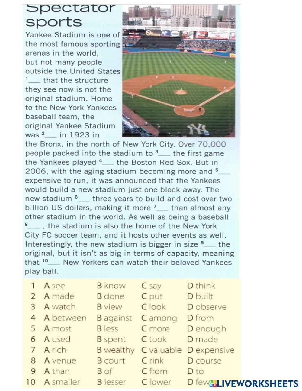Created byViktoriia English as a Second Language (ESL) use of english Age 13+ level: B1 Ukrainian Author's Instructions My Google Classroom Courses × 0 classes selected (0 students total) Quick Access Select all classes (0 classes) All Classes Loading courses... Cancel Share Share to selected Course __COURSE_NAME__ __STUDENT_NAME__ (__STUDENT_EMAIL__) SPORT Use of English Download Worksheet Validation Check my answers Emails my answers to my teacher Full name Group/level School subject Teacher's email or key code Close Submit Validating worksheet... (12) Your answers have been sent to your teacher. Good luck! OK We encountered an error submitting your answers. Please try again. OK Advertisement | Go Ad Free Created byViktoriia English as a Second Language (ESL) use of english Age 13+ level: B1 Ukrainian Author's Instructions