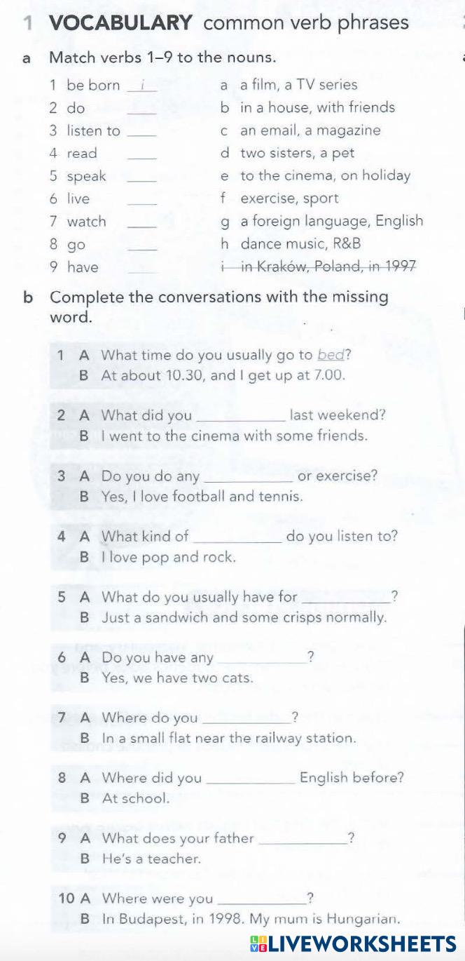 Created byMary English as a Second Language (ESL) action verbs Age 15+ level: pre-intermediate Ukrainian Author's Instructions My Google Classroom Courses × 0 classes selected (0 students total) Quick Access Select all classes (0 classes) All Classes Loading courses... Cancel Share Share to selected Course __COURSE_NAME__ __STUDENT_NAME__ (__STUDENT_EMAIL__) 1A ex 1 (a) (b) Download Worksheet Validation Check my answers Emails my answers to my teacher Full name Group/level School subject Teacher's email or key code Close Submit Validating worksheet... (12) Your answers have been sent to your teacher. Good luck! OK We encountered an error submitting your answers. Please try again. OK Advertisement | Go Ad Free Created byMary English as a Second Language (ESL) action verbs Age 15+ level: pre-intermediate Ukrainian Author's Instructions