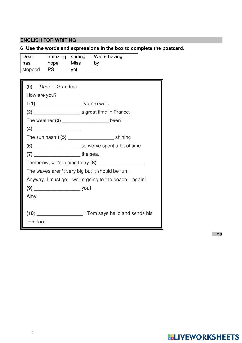 Created by InnaSem English as a Second Language (ESL) Present perfect Age 11+ level: Grade 3 Ukrainian Author's Instructions My Google Classroom Courses × 0 classes selected (0 students total) Quick Access Select all classes (0 classes) All Classes Loading courses... Cancel Share Share to selected Course __COURSE_NAME__ __STUDENT_NAME__ (__STUDENT_EMAIL__) WW 2 Unit 9 test language Download Worksheet Validation Check my answers Emails my answers to my teacher Full name Group/level School subject Teacher's email or key code Close Submit Validating worksheet... (12) Your answers have been sent to your teacher. Good luck! OK We encountered an error submitting your answers. Please try again. OK Advertisement | Go Ad Free Created by InnaSem English as a Second Language (ESL) Present perfect Age 11+ level: Grade 3 Ukrainian Author's Instructions