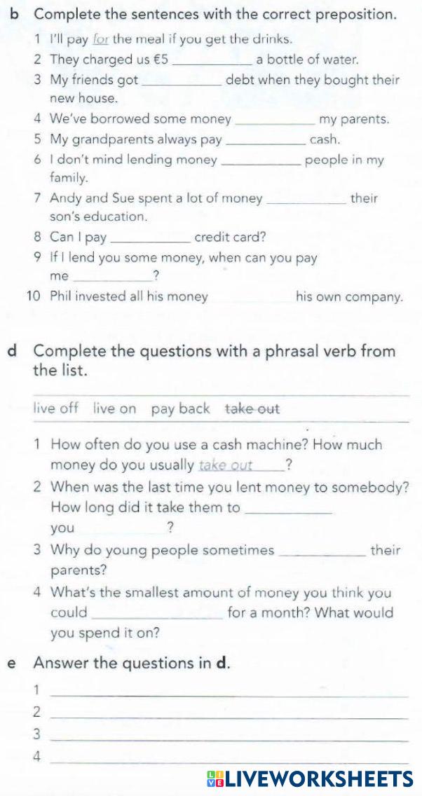 Created byMary English as a Second Language (ESL) Money Age 8+ level: intermediate Ukrainian Author's Instructions My Google Classroom Courses × 0 classes selected (0 students total) Quick Access Select all classes (0 classes) All Classes Loading courses... Cancel Share Share to selected Course __COURSE_NAME__ __STUDENT_NAME__ (__STUDENT_EMAIL__) 2A e x 1 (b) (c) (d) (e) Download Worksheet Validation Check my answers Emails my answers to my teacher Full name Group/level School subject Teacher's email or key code Close Submit Validating worksheet... (12) Your answers have been sent to your teacher. Good luck! OK We encountered an error submitting your answers. Please try again. OK Advertisement | Go Ad Free Created byMary English as a Second Language (ESL) Money Age 8+ level: intermediate Ukrainian Author's Instructions