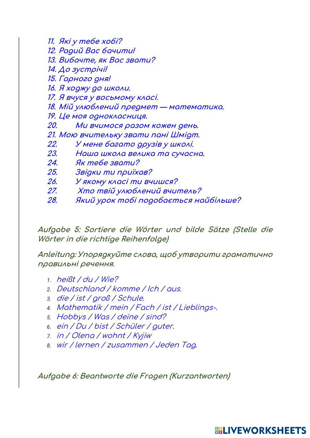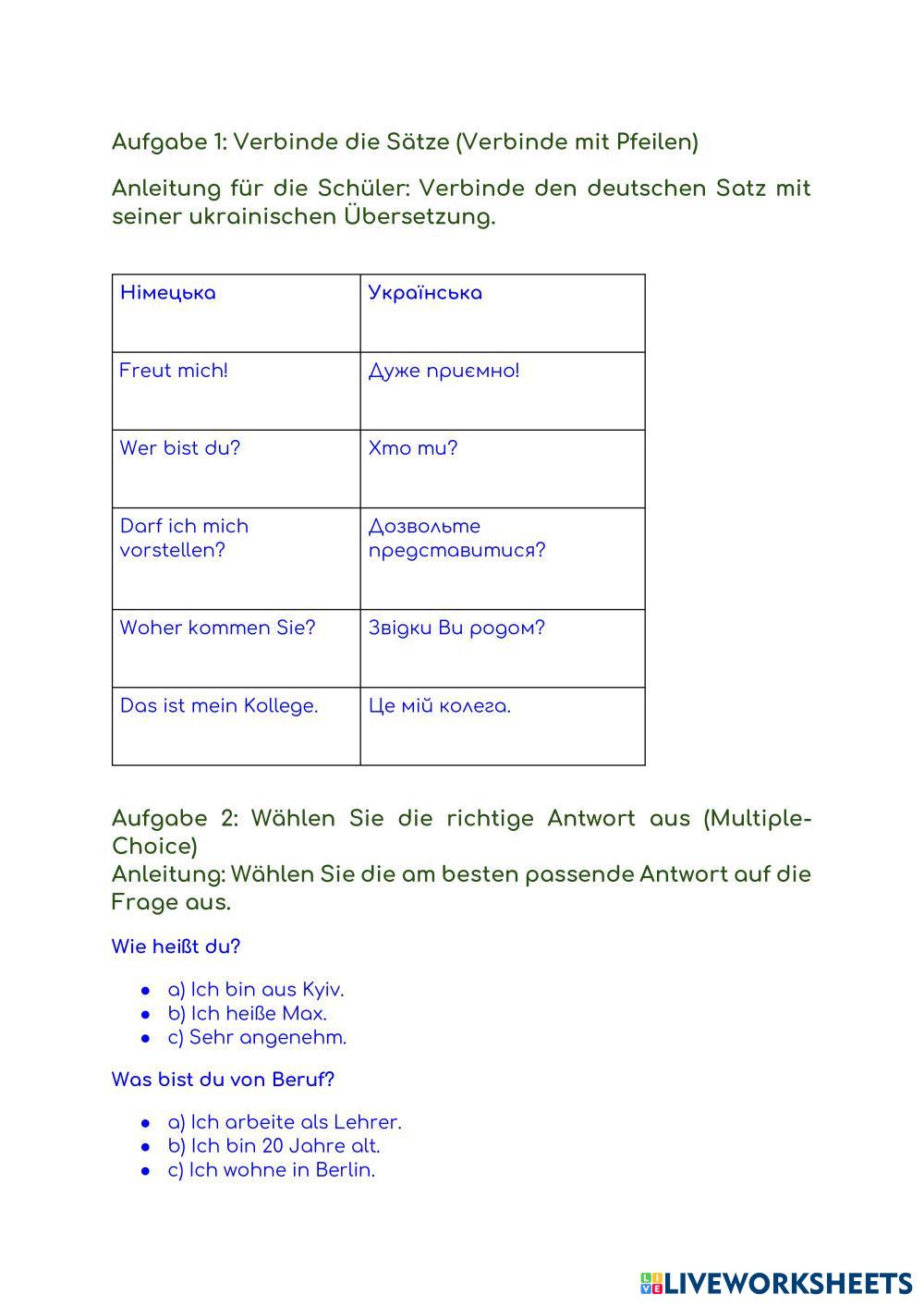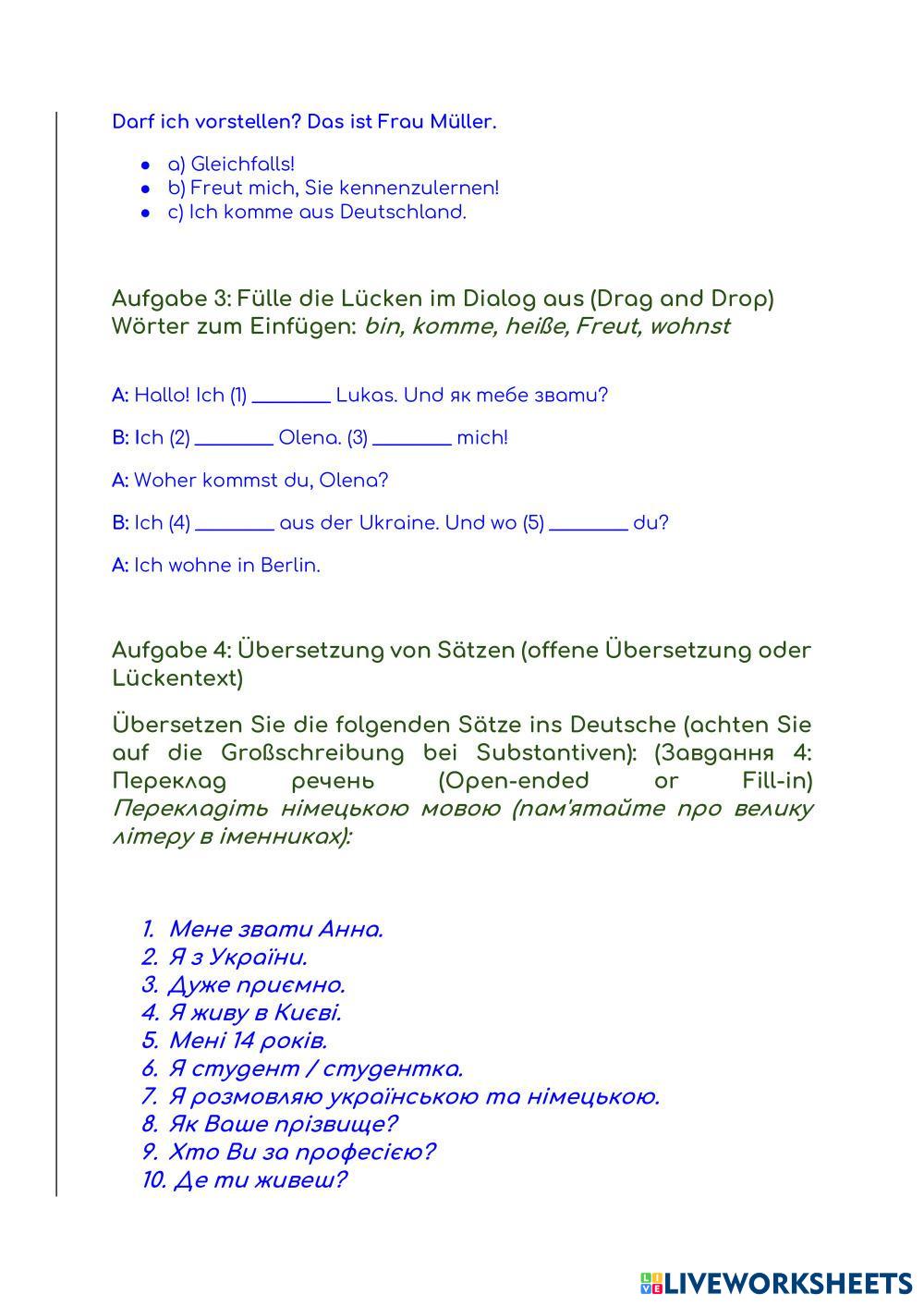 Навчися представлятися та знайомитися німецькою мовою. Виконай вправи нижче.