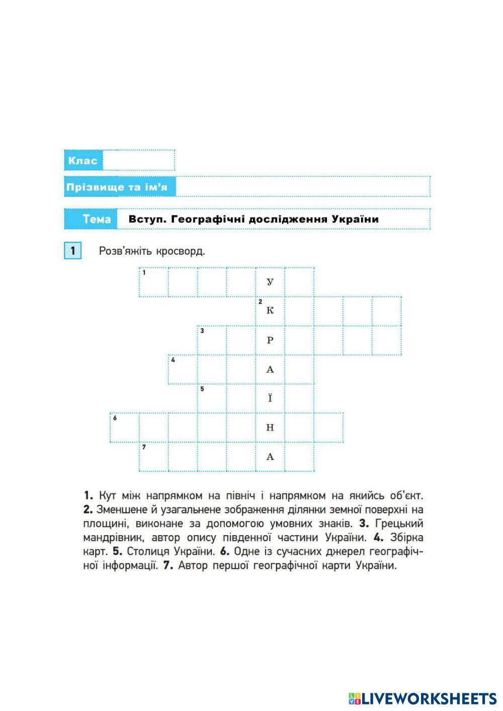 Created byОвдій Сергій Geography Map Age 12-10 level: 1 Ukrainian Author's Instructions My Google Classroom Courses × 0 classes selected (0 students total) Quick Access Select all classes (0 classes) All Classes Loading courses... Cancel Share Share to selected Course __COURSE_NAME__ __STUDENT_NAME__ (__STUDENT_EMAIL__) Дослідження території України Download Worksheet Validation Check my answers Emails my answers to my teacher Full name Group/level School subject Teacher's email or key code Close Submit Validating worksheet... (12) Your answers have been sent to your teacher. Good luck! OK We encountered an error submitting your answers. Please try again. OK Advertisement | Go Ad Free Created byОвдій Сергій Geography Map Age 12-10 level: 1 Ukrainian Author's Instructions
