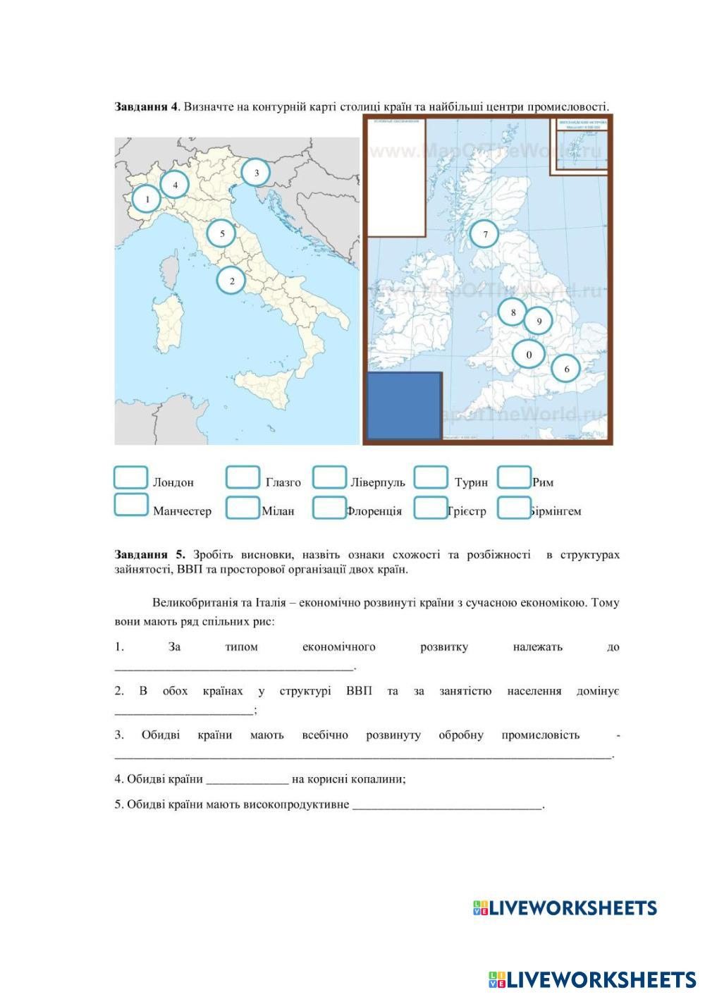 Created byVitenko Uliana Geography worksheets Age 15+ level: середній Ukrainian Author's Instructions My Google Classroom Courses × 0 classes selected (0 students total) Quick Access Select all classes (0 classes) All Classes Loading courses... Cancel Share Share to selected Course __COURSE_NAME__ __STUDENT_NAME__ (__STUDENT_EMAIL__) Практична робота 2 Складання картосхеми просторової організації економіки однієї з країн "Великої сімки" Download Worksheet Validation Check my answers Emails my answers to my teacher Full name Group/level School subject Teacher's email or key code Close Submit Validating worksheet... (12) Your answers have been sent to your teacher. Good luck! OK We encountered an error submitting your answers. Please try again. OK Advertisement | Go Ad Free Created byVitenko Uliana Geography worksheets Age 15+ level: середній Ukrainian Author's Instructions
