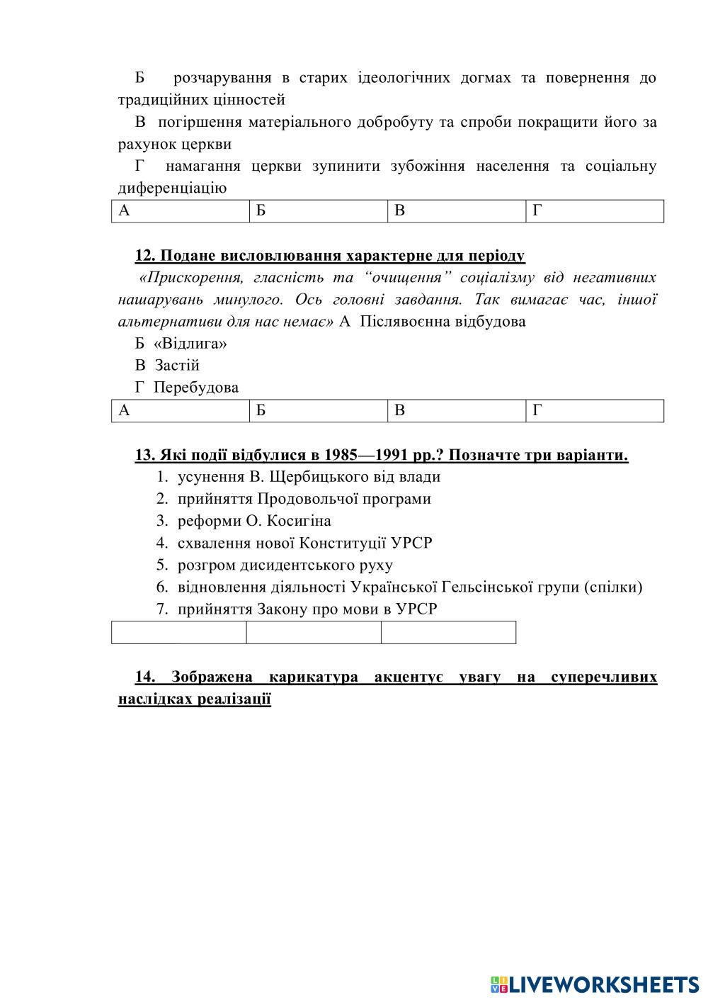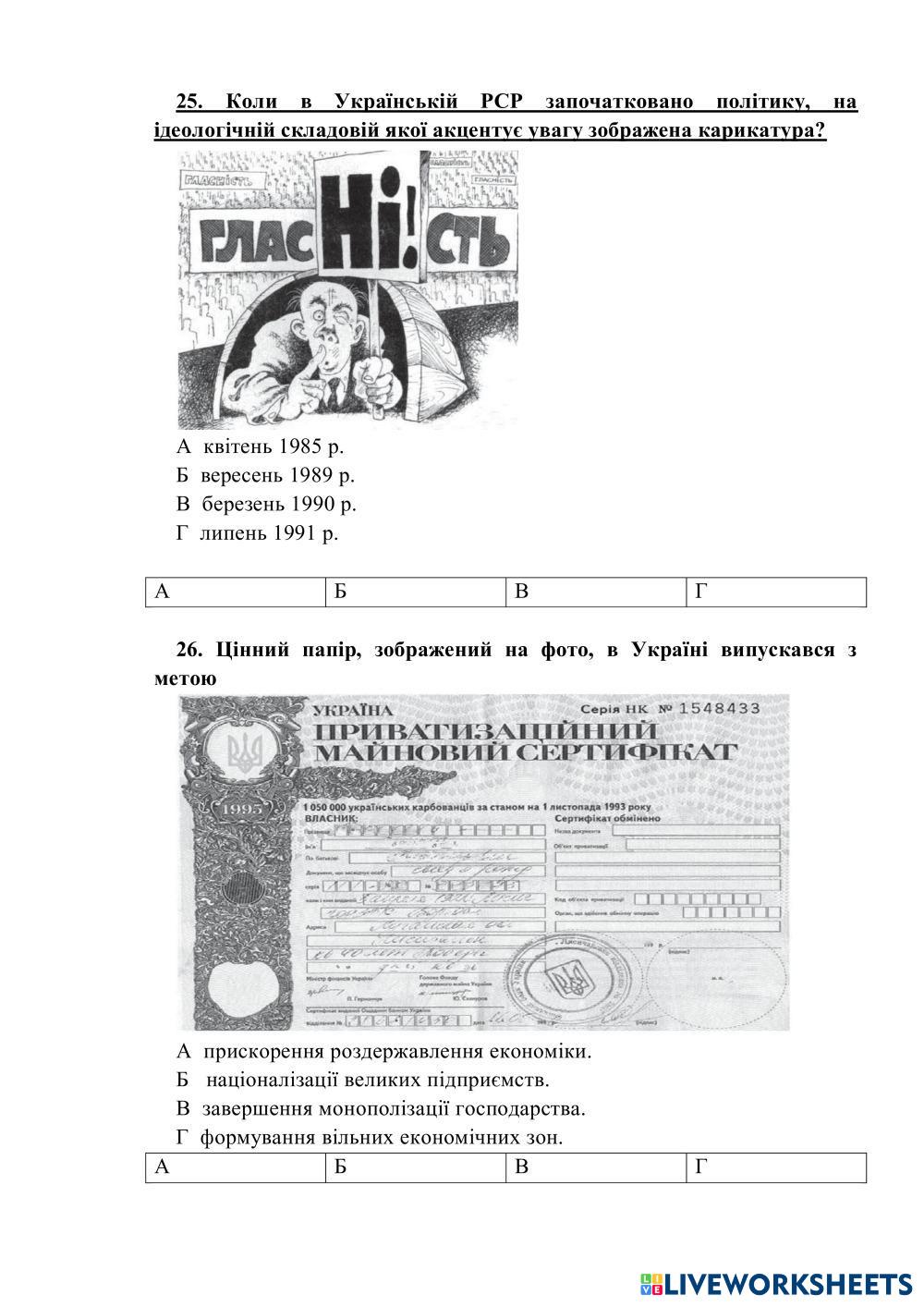Created by olenazhyrba History history Ukraine Age 16+ level: 11 Ukrainian Author's Instructions My Google Classroom Courses × 0 classes selected (0 students total) Quick Access Select all classes (0 classes) All Classes Loading courses... Cancel Share Share to selected Course __COURSE_NAME__ __STUDENT_NAME__ (__STUDENT_EMAIL__) Тема 30 Download Worksheet Validation Check my answers Emails my answers to my teacher Full name Group/level School subject Teacher's email or key code Close Submit Validating worksheet... (12) Your answers have been sent to your teacher. Good luck! OK We encountered an error submitting your answers. Please try again. OK Advertisement | Go Ad Free Created by olenazhyrba History history Ukraine Age 16+ level: 11 Ukrainian Author's Instructions