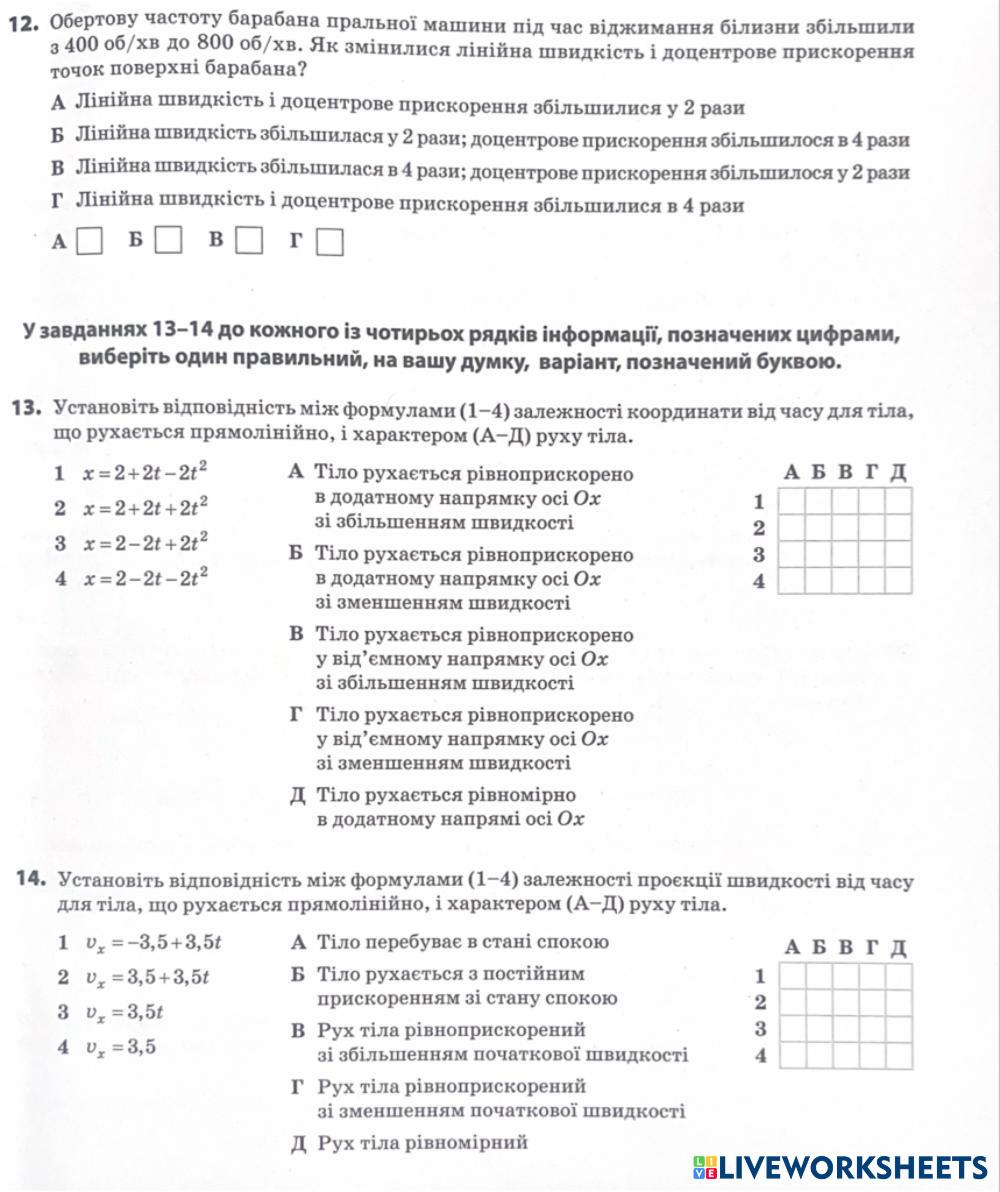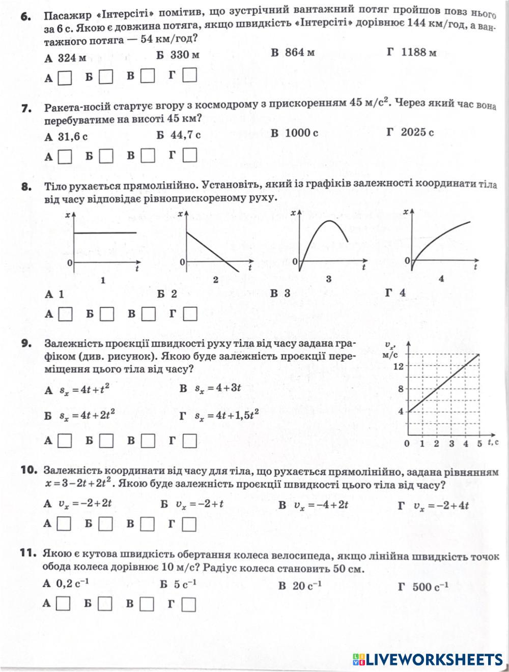 Кінематика 1 варіант