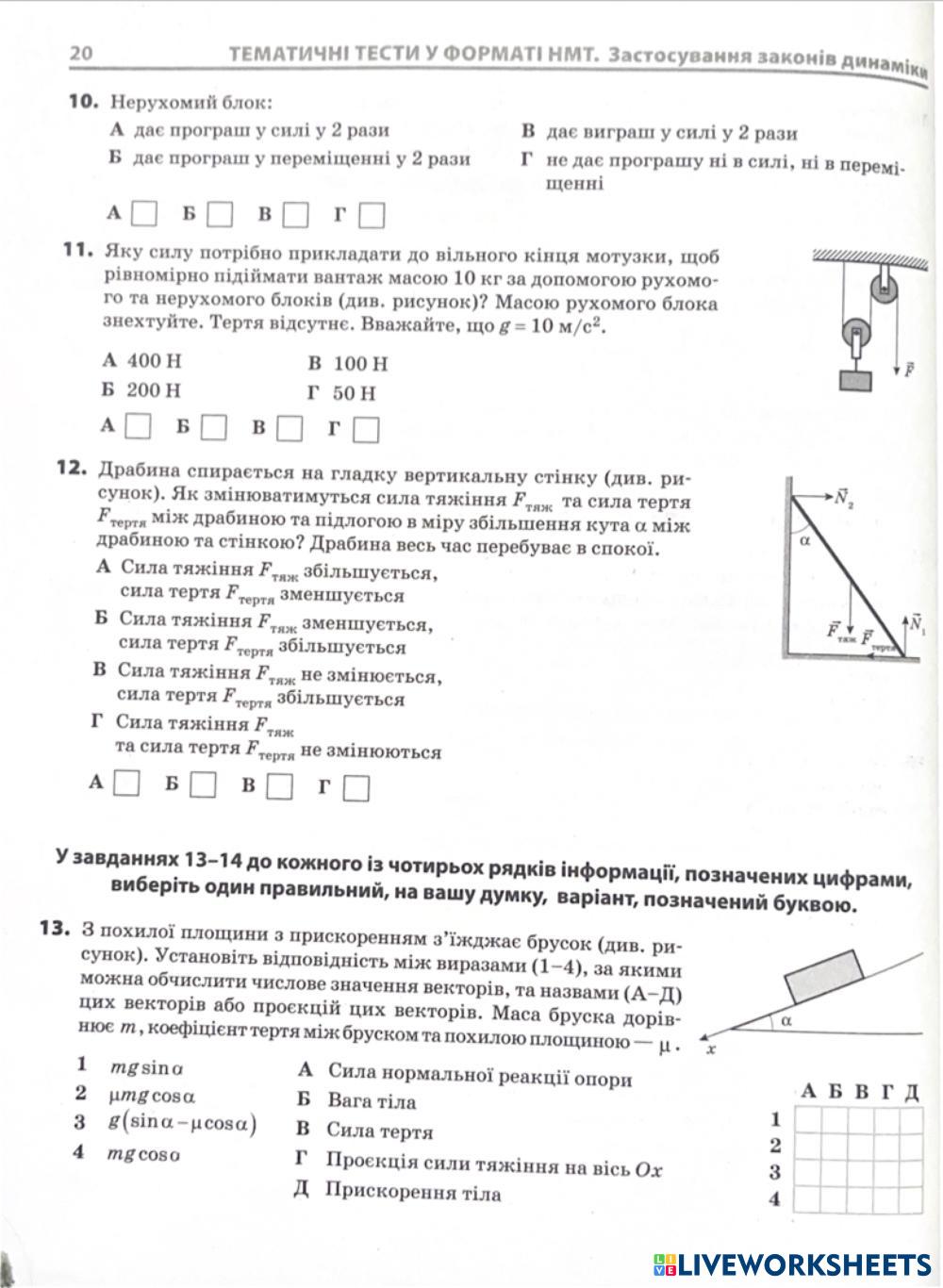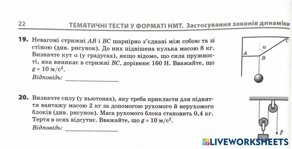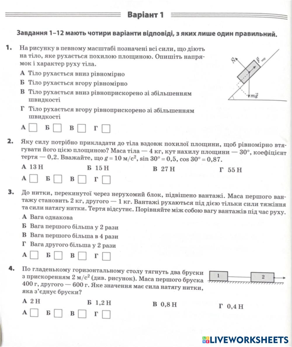 Застосування законів динаміки варіант 1