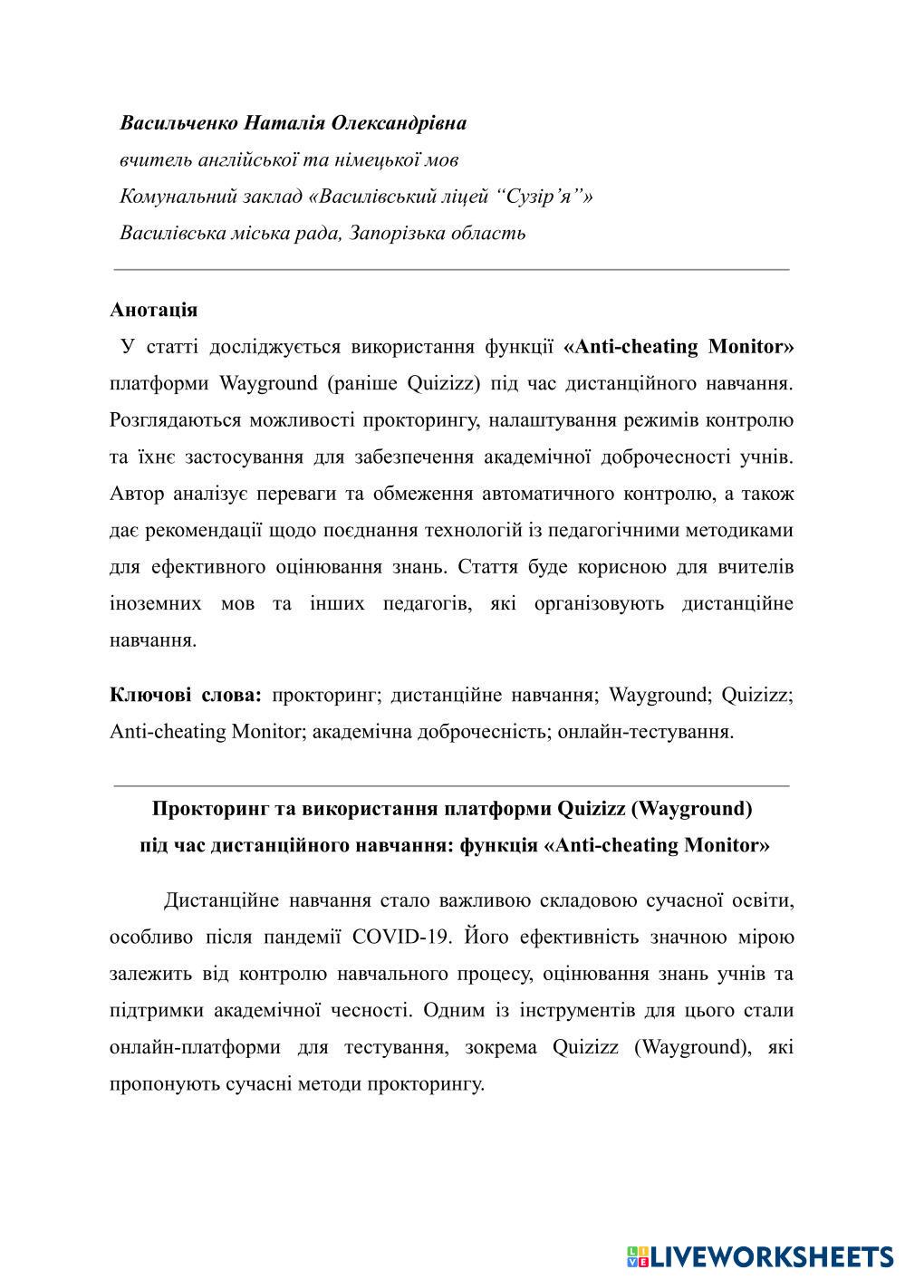 Created by 13165 Social Studies High School 11th grade Civics and Government Ukrainian Author's Instructions 785 My Google Classroom Courses × 0 classes selected (0 students total) Quick Access Select all classes (0 classes) All Classes Loading courses... Cancel Share Share to selected Course __COURSE_NAME__ __STUDENT_NAME__ (__STUDENT_EMAIL__) Класифікація рахунків Download Worksheet Validation Check my answers Emails my answers to my teacher Full name Group/level School subject Teacher's email or key code Close Submit Validating worksheet... (12) Your answers have been sent to your teacher. Good luck! OK We encountered an error submitting your answers. Please try again. OK Advertisement | Go Ad Free Created by 13165 Social Studies High School 11th grade Civics and Government Ukrainian Author's Instructions 785 Explore Worksheets Өсвөр үеийнхний санхүү Social Studies 11th grade Өсвөр үеийнхний санхүү Civics and Government - Social Studies Зорилгоо тодорхойл Контрольна робота 11 клас Зарубіжна література Social Studies 11th grade Контрольна робота 11 клас Зарубіжна література Civics and Government - Social Studies Виконати завдання. Контрольна моє 3 рівні. Перший рівень оцінюється максимум на 5 балів ІІ рівень на 3 бали ІІ рівень на 4 бали Las cuatro leyes de la lógica Social Studies 11th grade Las cuatro leyes de la lógica Civics and Government - Social Studies Leer las indicaciones y resolver วันสำคัญทางพระพุทธศาสนา Social Studies 11th grade วันสำคัญทางพระพุทธศาสนา Civics and Government - Social Studies กรอกใบงานนี้ให้สมบูรณ์