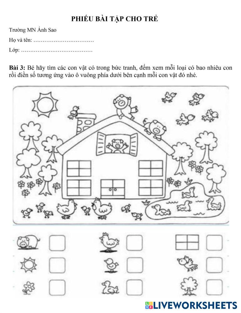 Created byNguyễn Xuân Bé làm quen với toán Làm quen với toán Age 5-10 level: 5 Vietnamese Author's Instructions My Google Classroom Courses × 0 classes selected (0 students total) Quick Access Select all classes (0 classes) All Classes Loading courses... Cancel Share Share to selected Course __COURSE_NAME__ __STUDENT_NAME__ (__STUDENT_EMAIL__) Bài 1 đếm Download Worksheet Validation Check my answers Emails my answers to my teacher Full name Group/level School subject Teacher's email or key code Close Submit Validating worksheet... (12) Your answers have been sent to your teacher. Good luck! OK We encountered an error submitting your answers. Please try again. OK Advertisement | Go Ad Free Created byNguyễn Xuân Bé làm quen với toán Làm quen với toán Age 5-10 level: 5 Vietnamese Author's Instructions