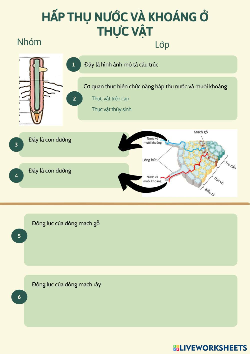 Created byLê Bích Vân Biology PHIẾU HỌC TẬP Age 16+ level: 11 Vietnamese Author's Instructions My Google Classroom Courses × 0 classes selected (0 students total) Quick Access Select all classes (0 classes) All Classes Loading courses... Cancel Share Share to selected Course __COURSE_NAME__ __STUDENT_NAME__ (__STUDENT_EMAIL__) Bài 2. Vận chuyển nước và muối khoáng ở thực vật (phiếu số 1) Download Worksheet Validation Check my answers Emails my answers to my teacher Full name Group/level School subject Teacher's email or key code Close Submit Validating worksheet... (12) Your answers have been sent to your teacher. Good luck! OK We encountered an error submitting your answers. Please try again. OK Advertisement | Go Ad Free Created byLê Bích Vân Biology PHIẾU HỌC TẬP Age 16+ level: 11 Vietnamese Author's Instructions