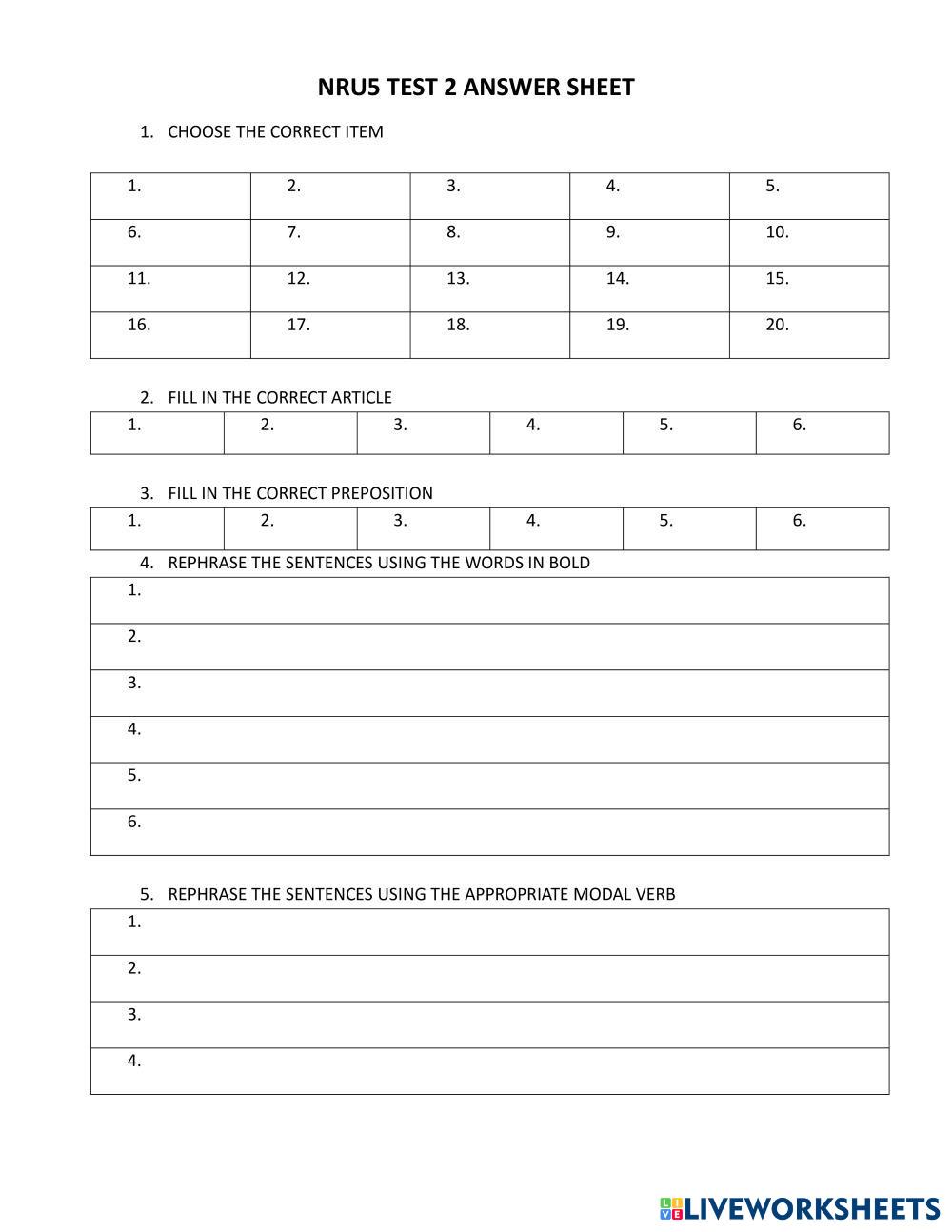 Created by eclass2h English Language Middle School 7th grade Grammar Vietnamese Author's Instructions Fill in the blank with the most suitabe word My Google Classroom Courses × 0 classes selected (0 students total) Quick Access Select all classes (0 classes) All Classes Loading courses... Cancel Share Share to selected Course __COURSE_NAME__ __STUDENT_NAME__ (__STUDENT_EMAIL__) NRU5 TEST 2 Download Worksheet Validation Check my answers Emails my answers to my teacher Full name Group/level School subject Teacher's email or key code Close Submit Validating worksheet... (12) Your answers have been sent to your teacher. Good luck! OK We encountered an error submitting your answers. Please try again. OK Advertisement | Go Ad Free Created by eclass2h English Language Middle School 7th grade Grammar Vietnamese Author's Instructions Fill in the blank with the most suitabe word Explore Worksheets 2º parcial 7º ejecutivo English Language 7th grade 2º parcial 7º ejecutivo Grammar - English Language Do it Present Progressive English Language 7th grade Present Progressive Grammar - English Language please Read and answer these sentences Present Progressive English Language 7th grade Present Progressive Grammar - English Language name Grade07_Review123 English Language 7th grade Grade07_Review123 Grammar - English Language This is a review exercise for unit 1, 2, 3.