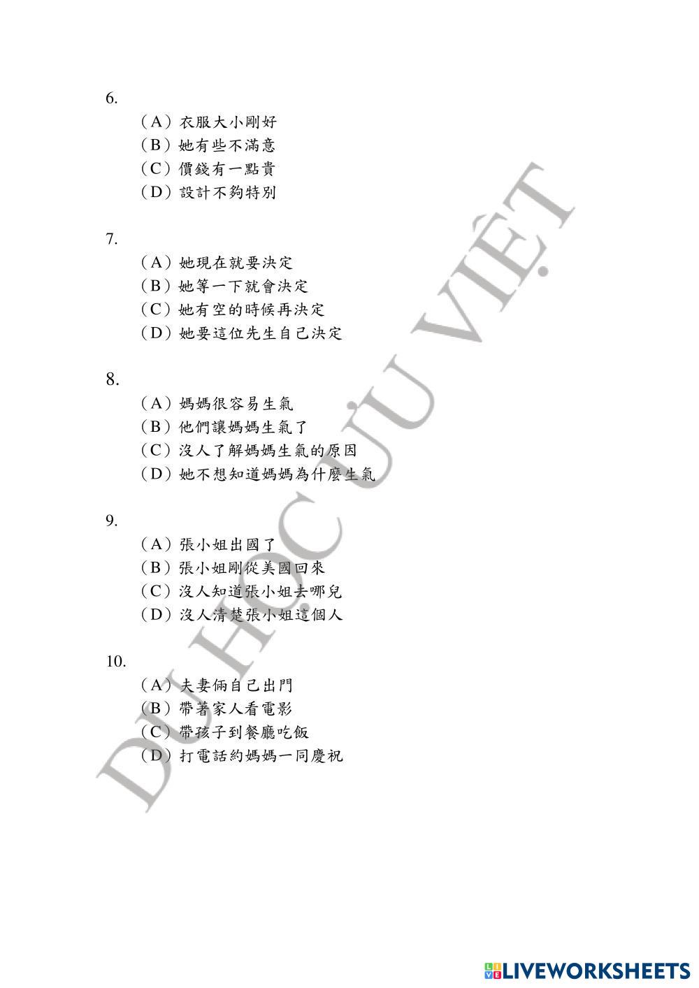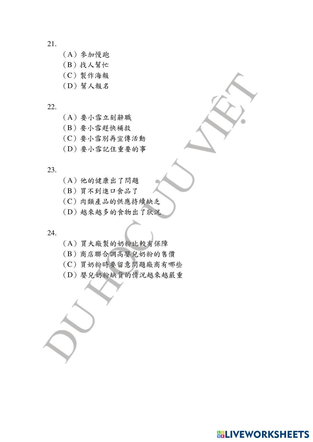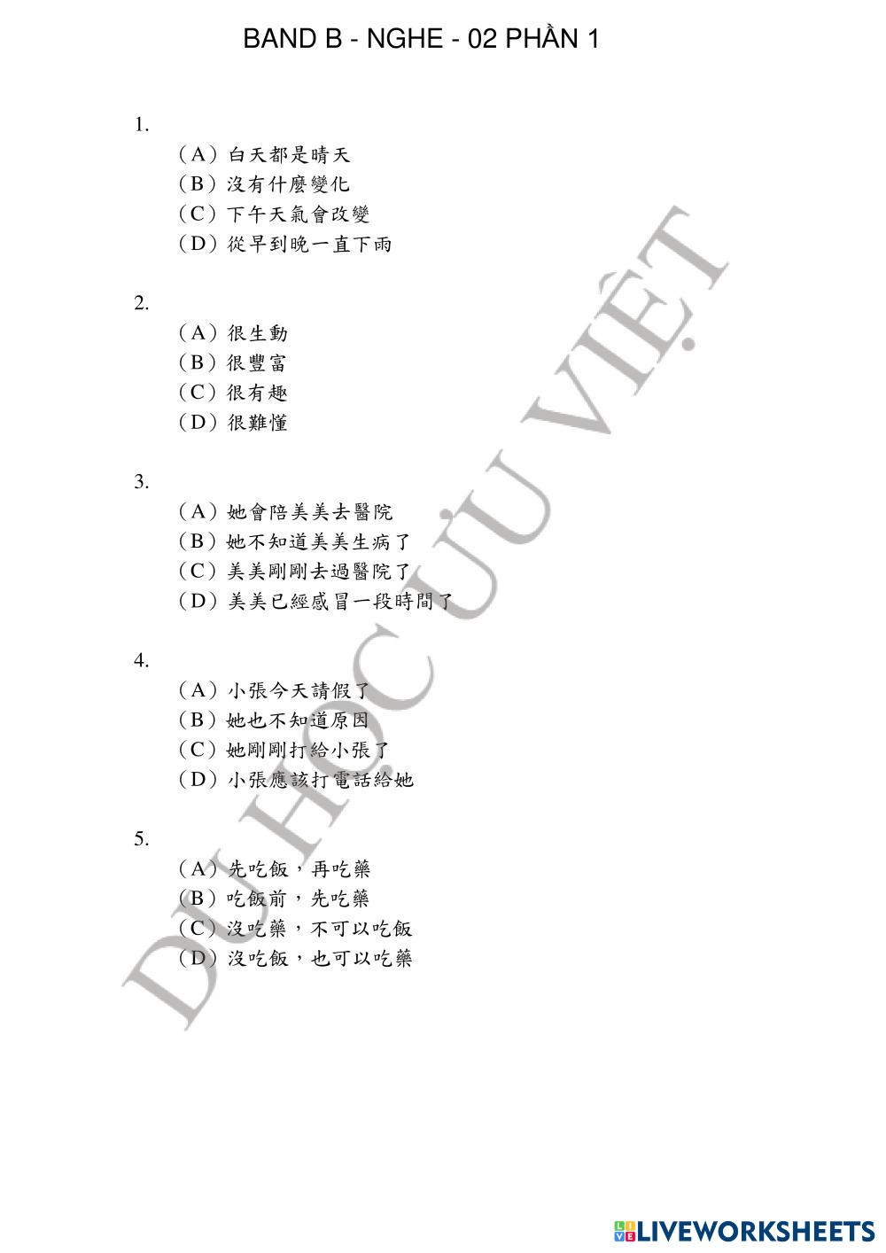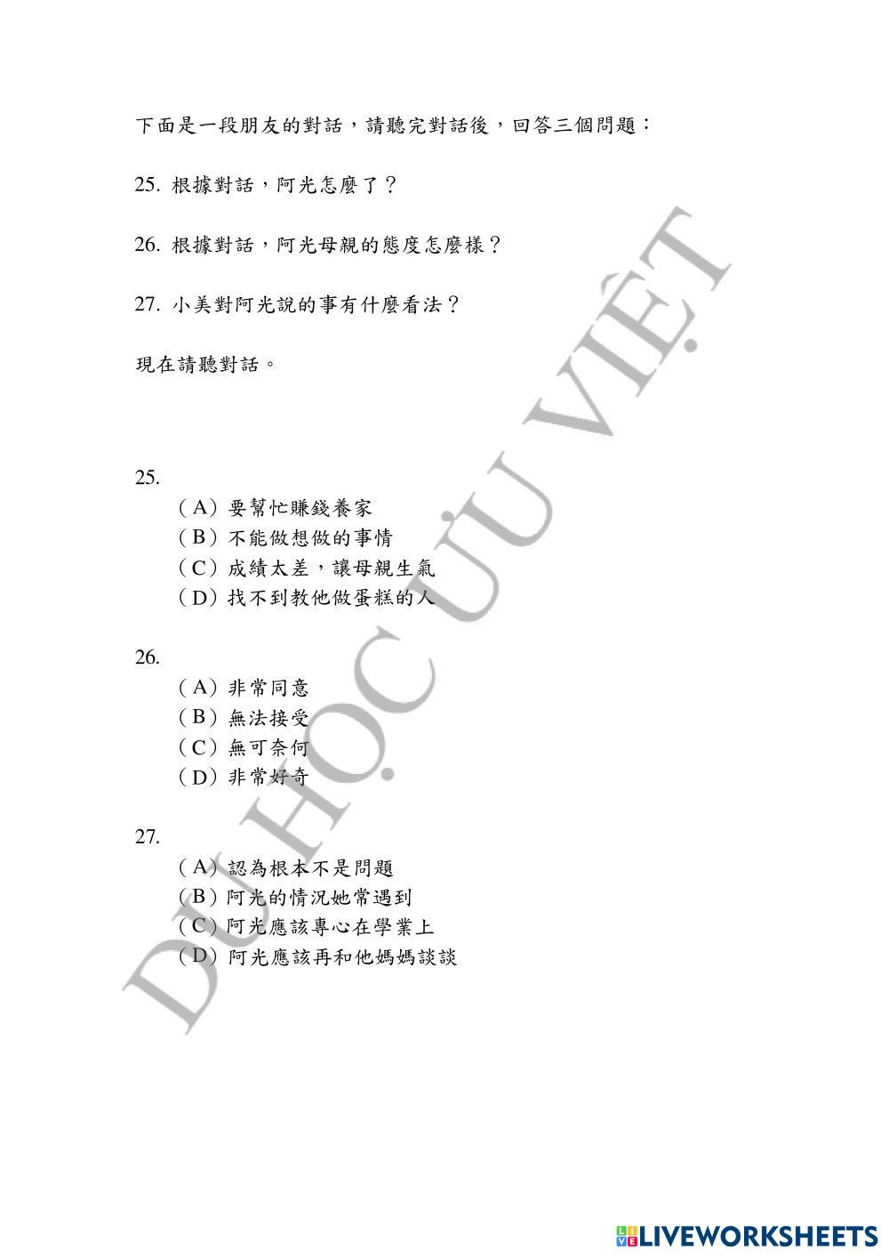 Created by優越中心Uuviet English Language High School 12th grade Writing Vietnamese Author's Instructions TOCLF 3 My Google Classroom Courses × 0 classes selected (0 students total) Quick Access Select all classes (0 classes) All Classes Loading courses... Cancel Share Share to selected Course __COURSE_NAME__ __STUDENT_NAME__ (__STUDENT_EMAIL__) UUVIET - BAND B- 02 - NGHE PHẦN 1 Download Worksheet Validation Check my answers Emails my answers to my teacher Full name Group/level School subject Teacher's email or key code Close Submit Validating worksheet... (12) Your answers have been sent to your teacher. Good luck! OK We encountered an error submitting your answers. Please try again. OK Advertisement | Go Ad Free Created by優越中心Uuviet English Language High School 12th grade Writing Vietnamese Author's Instructions TOCLF 3 Explore Worksheets Đề 1 C1 Đại Học Bộ 20 đề về đích English Language 12th grade Đề 1 C1 Đại Học Bộ 20 đề về đích Writing - English Language Test UUVIET - BAND B- 02 - NGHE PHẦN 2 English Language 12th grade UUVIET - BAND B- 02 - NGHE PHẦN 2 Writing - English Language TOCLF 3 练习一 English Language 12th grade 练习一 Writing - English Language 连线 EXAM #2 BASIC ENGLISH 2 English Language 12th grade EXAM #2 BASIC ENGLISH 2 Writing - English Language READ DE INSTRUCTIONS AND ANSWER THE QUESTION. LEE LAS INSTRUCCIONES Y RESPONDE LAS PREGUNTAS.