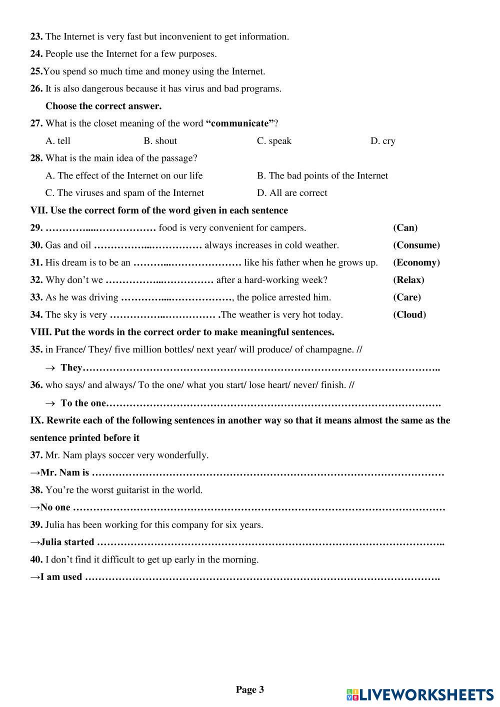 Created by Msngoc English as a Second Language (ESL) Test Age 12-18 level: 9 Vietnamese Author's Instructions My Google Classroom Courses × 0 classes selected (0 students total) Quick Access Select all classes (0 classes) All Classes Loading courses... Cancel Share Share to selected Course __COURSE_NAME__ __STUDENT_NAME__ (__STUDENT_EMAIL__) ĐỀ THI VÀO 10 - TEST 03.1 Download Worksheet Validation Check my answers Emails my answers to my teacher Full name Group/level School subject Teacher's email or key code Close Submit Validating worksheet... (12) Your answers have been sent to your teacher. Good luck! OK We encountered an error submitting your answers. Please try again. OK Advertisement | Go Ad Free Created by Msngoc English as a Second Language (ESL) Test Age 12-18 level: 9 Vietnamese Author's Instructions