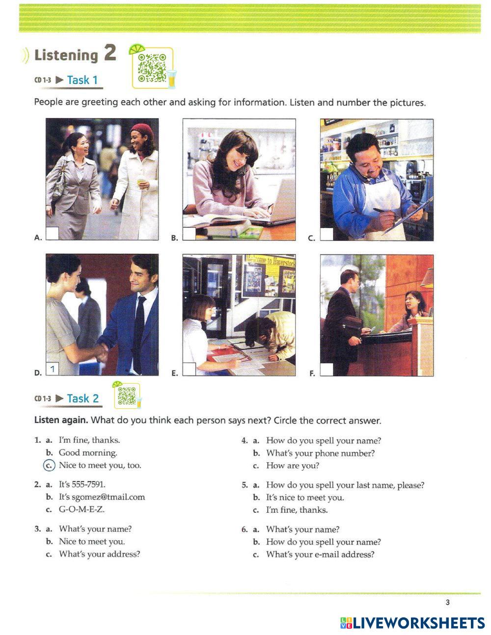 Created by Quang English as a Second Language (ESL) Listening Practice Age 10+ level: A2 Vietnamese Author's Instructions Introductions and Names My Google Classroom Courses × 0 classes selected (0 students total) Quick Access Select all classes (0 classes) All Classes Loading courses... Cancel Share Share to selected Course __COURSE_NAME__ __STUDENT_NAME__ (__STUDENT_EMAIL__) Basic Tactics for Listening Download Worksheet Validation Check my answers Emails my answers to my teacher Full name Group/level School subject Teacher's email or key code Close Submit Validating worksheet... (12) Your answers have been sent to your teacher. Good luck! OK We encountered an error submitting your answers. Please try again. OK Advertisement | Go Ad Free Created by Quang English as a Second Language (ESL) Listening Practice Age 10+ level: A2 Vietnamese Author's Instructions Introductions and Names