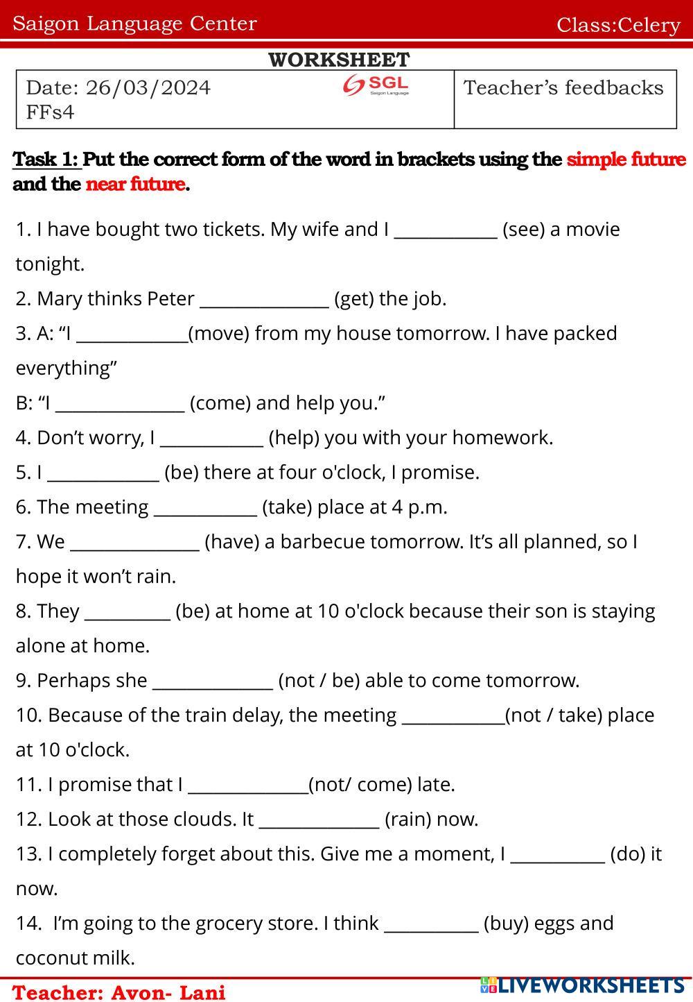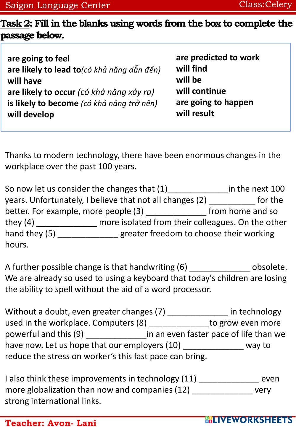 Created byNguyễn Thị ThanhThao english k Age 10-15 level: ffs4 Vietnamese Author's Instructions hf My Google Classroom Courses × 0 classes selected (0 students total) Quick Access Select all classes (0 classes) All Classes Loading courses... Cancel Share Share to selected Course __COURSE_NAME__ __STUDENT_NAME__ (__STUDENT_EMAIL__) Celery Download Worksheet Validation Check my answers Emails my answers to my teacher Full name Group/level School subject Teacher's email or key code Close Submit Validating worksheet... (12) Your answers have been sent to your teacher. Good luck! OK We encountered an error submitting your answers. Please try again. OK Advertisement | Go Ad Free Created byNguyễn Thị ThanhThao english k Age 10-15 level: ffs4 Vietnamese Author's Instructions hf