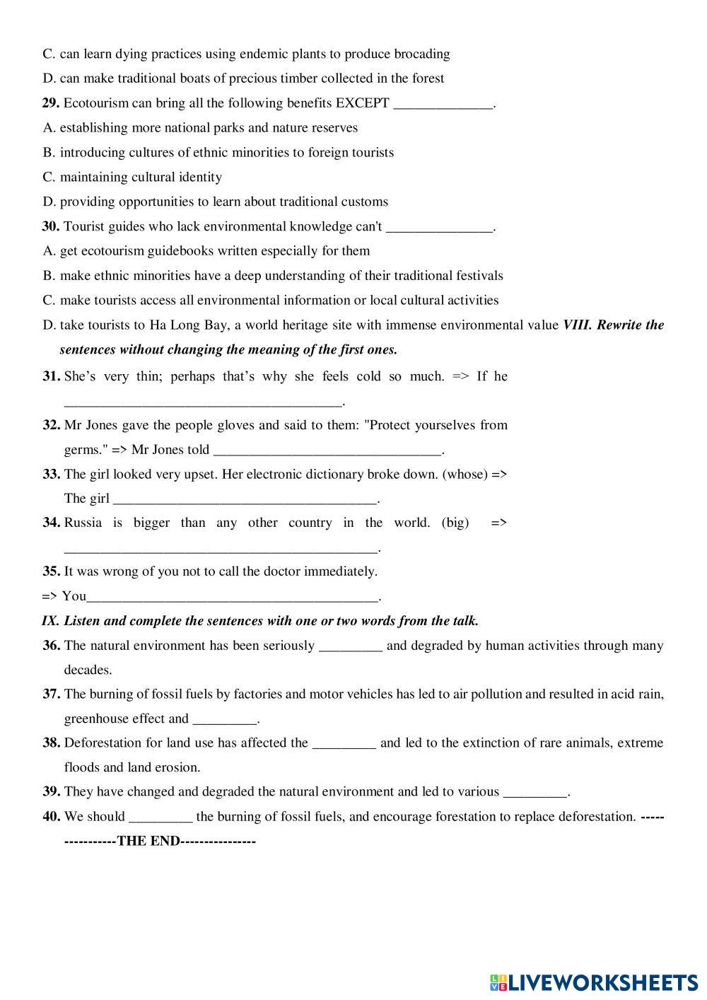 Created byNguyễn Xuân Đông english test Age 15+ level: 10 Vietnamese Author's Instructions My Google Classroom Courses × 0 classes selected (0 students total) Quick Access Select all classes (0 classes) All Classes Loading courses... Cancel Share Share to selected Course __COURSE_NAME__ __STUDENT_NAME__ (__STUDENT_EMAIL__) Đề 3 cuối kì 2 lớp 10 Download Worksheet Validation Check my answers Emails my answers to my teacher Full name Group/level School subject Teacher's email or key code Close Submit Validating worksheet... (12) Your answers have been sent to your teacher. Good luck! OK We encountered an error submitting your answers. Please try again. OK Advertisement | Go Ad Free Created byNguyễn Xuân Đông english test Age 15+ level: 10 Vietnamese Author's Instructions