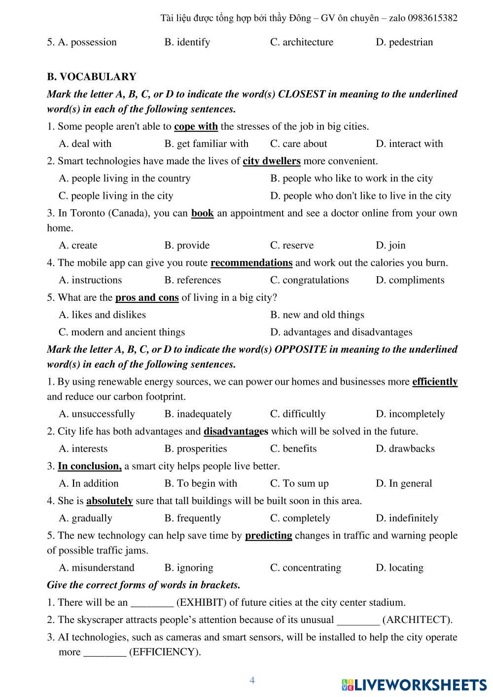 Created byNguyễn Xuân Đông English Test Age 17+ level: 11 Vietnamese Author's Instructions My Google Classroom Courses × 0 classes selected (0 students total) Quick Access Select all classes (0 classes) All Classes Loading courses... Cancel Share Share to selected Course __COURSE_NAME__ __STUDENT_NAME__ (__STUDENT_EMAIL__) Unit 3 lớp 11 Download Worksheet Validation Check my answers Emails my answers to my teacher Full name Group/level School subject Teacher's email or key code Close Submit Validating worksheet... (12) Your answers have been sent to your teacher. Good luck! OK We encountered an error submitting your answers. Please try again. OK Advertisement | Go Ad Free Created byNguyễn Xuân Đông English Test Age 17+ level: 11 Vietnamese Author's Instructions
