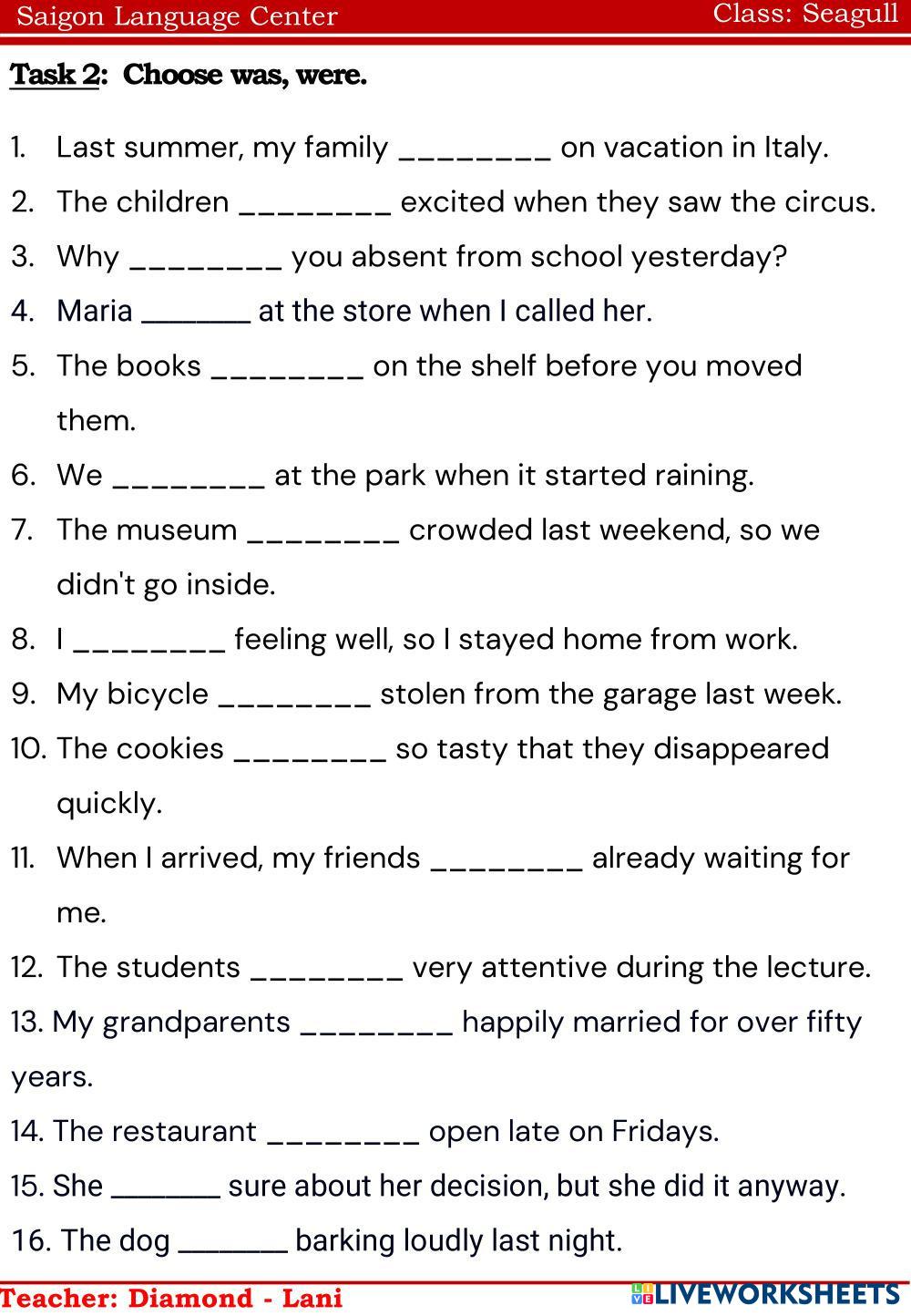 Created byNguyễn Thị ThanhThao ENGLISH ENGLISH Age 9-13 level: ENGLISH Vietnamese Author's Instructions RE My Google Classroom Courses × 0 classes selected (0 students total) Quick Access Select all classes (0 classes) All Classes Loading courses... Cancel Share Share to selected Course __COURSE_NAME__ __STUDENT_NAME__ (__STUDENT_EMAIL__) Seagull Download Worksheet Validation Check my answers Emails my answers to my teacher Full name Group/level School subject Teacher's email or key code Close Submit Validating worksheet... (12) Your answers have been sent to your teacher. Good luck! OK We encountered an error submitting your answers. Please try again. OK Advertisement | Go Ad Free Created byNguyễn Thị ThanhThao ENGLISH ENGLISH Age 9-13 level: ENGLISH Vietnamese Author's Instructions RE