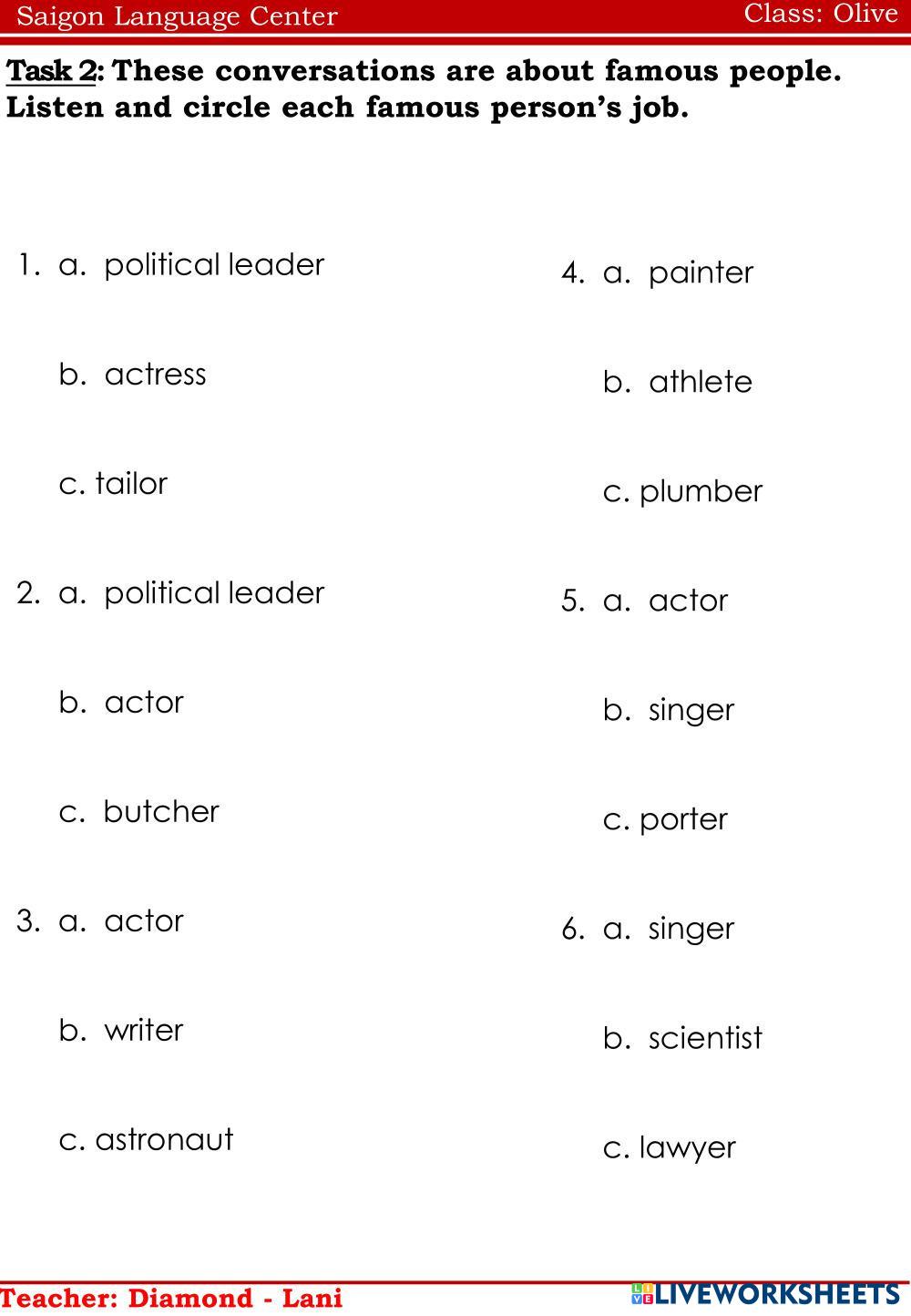 Created byNguyễn Thị ThanhThao english english Age 10-15 level: ffs4 Vietnamese Author's Instructions no My Google Classroom Courses × 0 classes selected (0 students total) Quick Access Select all classes (0 classes) All Classes Loading courses... Cancel Share Share to selected Course __COURSE_NAME__ __STUDENT_NAME__ (__STUDENT_EMAIL__) Olive Download Worksheet Validation Check my answers Emails my answers to my teacher Full name Group/level School subject Teacher's email or key code Close Submit Validating worksheet... (12) Your answers have been sent to your teacher. Good luck! OK We encountered an error submitting your answers. Please try again. OK Advertisement | Go Ad Free Created byNguyễn Thị ThanhThao english english Age 10-15 level: ffs4 Vietnamese Author's Instructions no