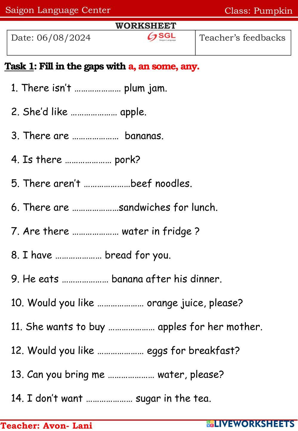 Created byNguyễn Thị ThanhThao English e Age 8-13 level: ffs2 Vietnamese Author's Instructions e My Google Classroom Courses × 0 classes selected (0 students total) Quick Access Select all classes (0 classes) All Classes Loading courses... Cancel Share Share to selected Course __COURSE_NAME__ __STUDENT_NAME__ (__STUDENT_EMAIL__) Pumpkin Download Worksheet Validation Check my answers Emails my answers to my teacher Full name Group/level School subject Teacher's email or key code Close Submit Validating worksheet... (12) Your answers have been sent to your teacher. Good luck! OK We encountered an error submitting your answers. Please try again. OK Advertisement | Go Ad Free Created byNguyễn Thị ThanhThao English e Age 8-13 level: ffs2 Vietnamese Author's Instructions e