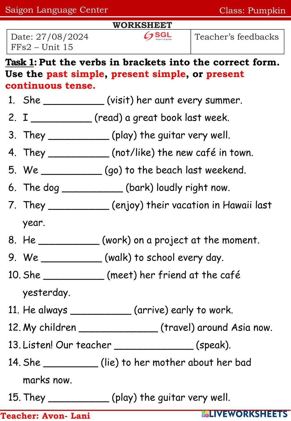 Created byNguyễn Thị ThanhThao english english Age 10-16 level: ffs2 Vietnamese Author's Instructions e My Google Classroom Courses × 0 classes selected (0 students total) Quick Access Select all classes (0 classes) All Classes Loading courses... Cancel Share Share to selected Course __COURSE_NAME__ __STUDENT_NAME__ (__STUDENT_EMAIL__) Pumpkin Download Worksheet Validation Check my answers Emails my answers to my teacher Full name Group/level School subject Teacher's email or key code Close Submit Validating worksheet... (12) Your answers have been sent to your teacher. Good luck! OK We encountered an error submitting your answers. Please try again. OK Advertisement | Go Ad Free Created byNguyễn Thị ThanhThao english english Age 10-16 level: ffs2 Vietnamese Author's Instructions e