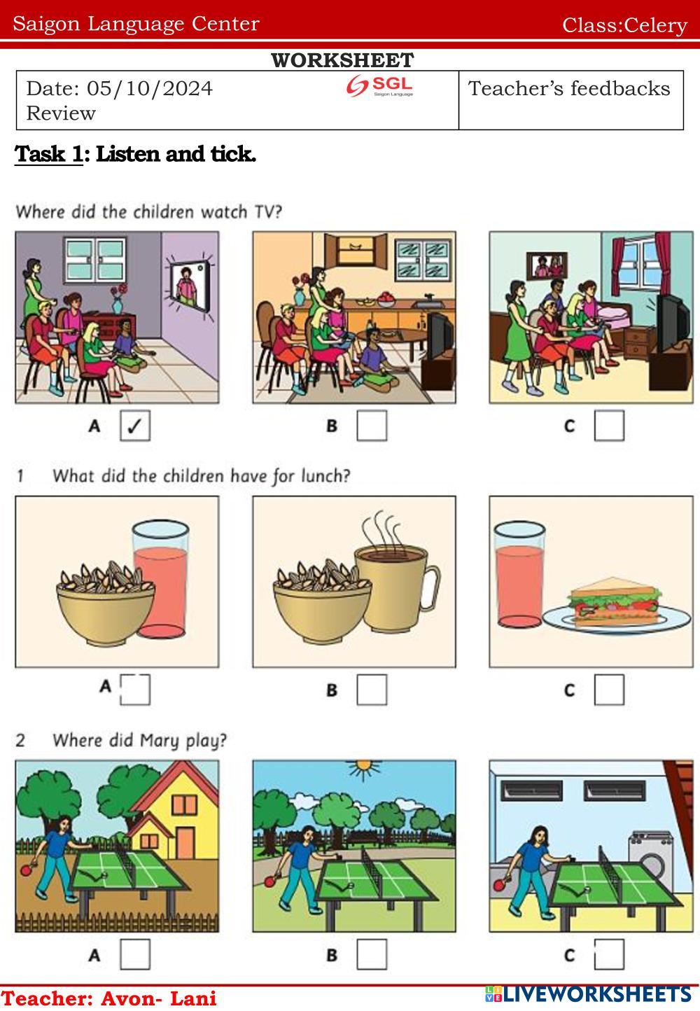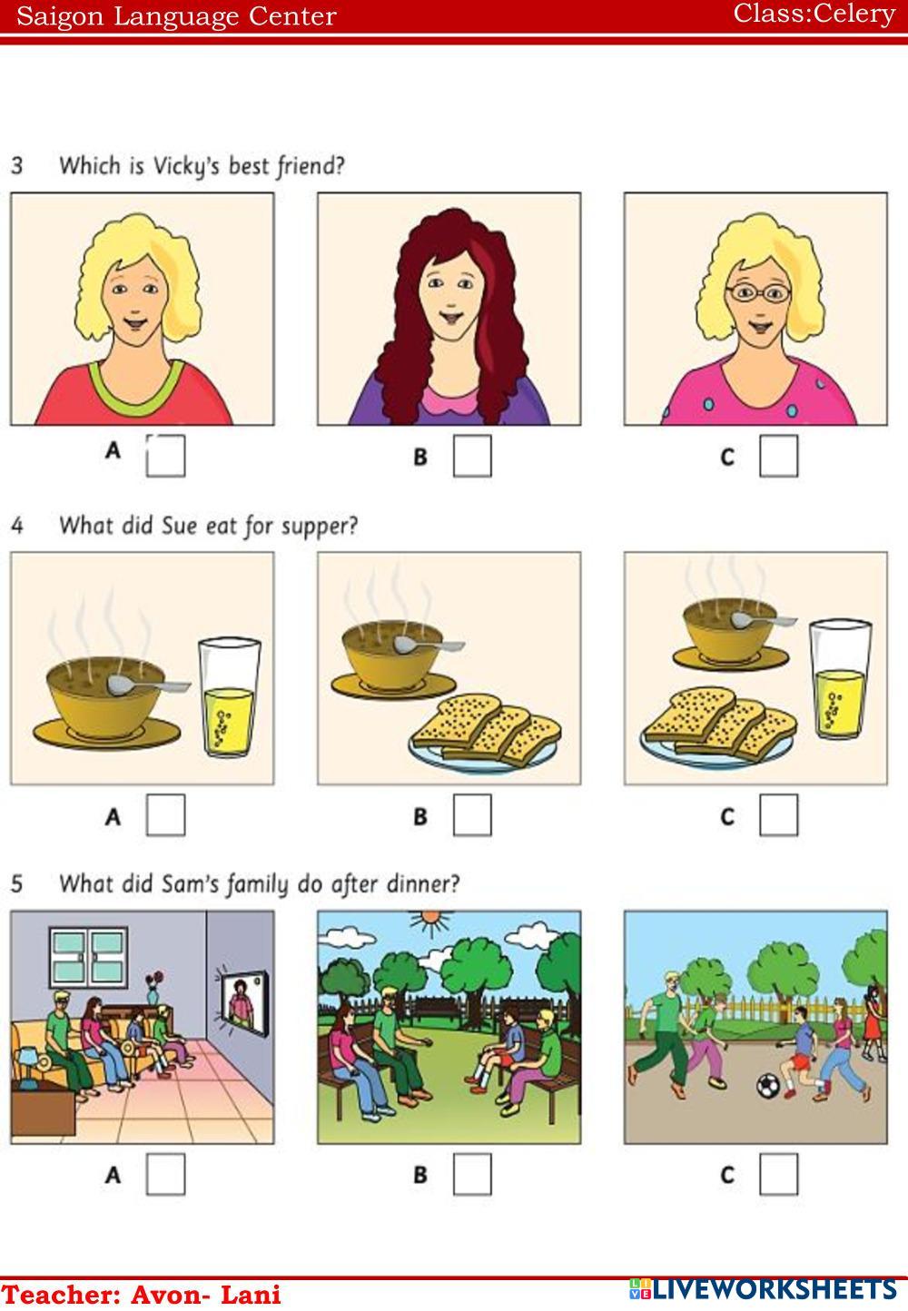 Created byNguyễn Thị ThanhThao english english Age 11-15 level: ffs2 Vietnamese Author's Instructions e My Google Classroom Courses × 0 classes selected (0 students total) Quick Access Select all classes (0 classes) All Classes Loading courses... Cancel Share Share to selected Course __COURSE_NAME__ __STUDENT_NAME__ (__STUDENT_EMAIL__) Celery 05/10/2024 Download Worksheet Validation Check my answers Emails my answers to my teacher Full name Group/level School subject Teacher's email or key code Close Submit Validating worksheet... (12) Your answers have been sent to your teacher. Good luck! OK We encountered an error submitting your answers. Please try again. OK Advertisement | Go Ad Free Created byNguyễn Thị ThanhThao english english Age 11-15 level: ffs2 Vietnamese Author's Instructions e